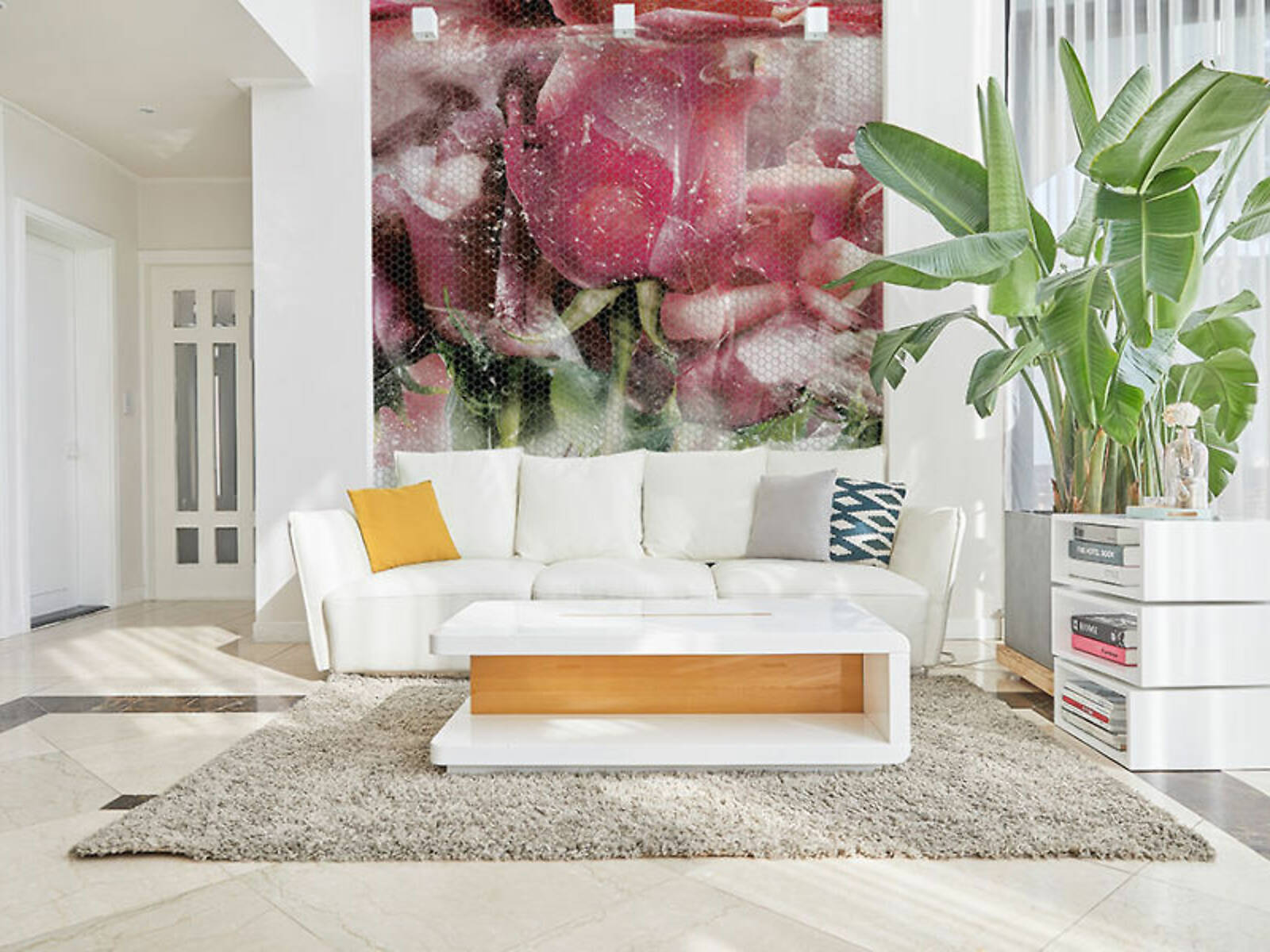 Материал не впитывает воду, что позволяет широко использовать его в отделке ванных комнат, душевых, кухонь, бассейнов и других влажных помещений.
