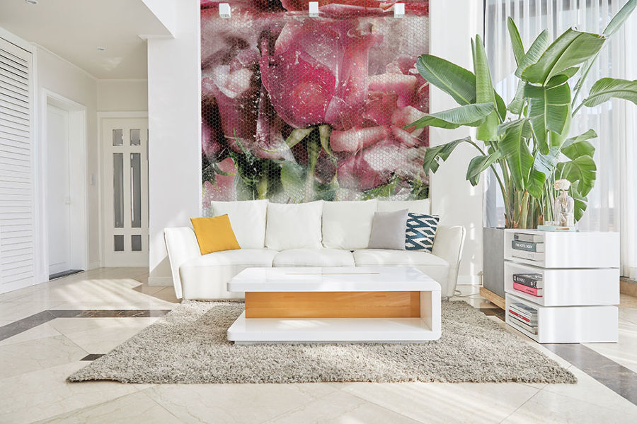 Сетка из стекловолокна, создающая несущую основу плитки-матрицы, гибкая. Это позволяет покрывать мозаикой Fabrizio Roberto® разноуровневые и криволинейные поверхности (бортики бассейнов, своды, колонны).