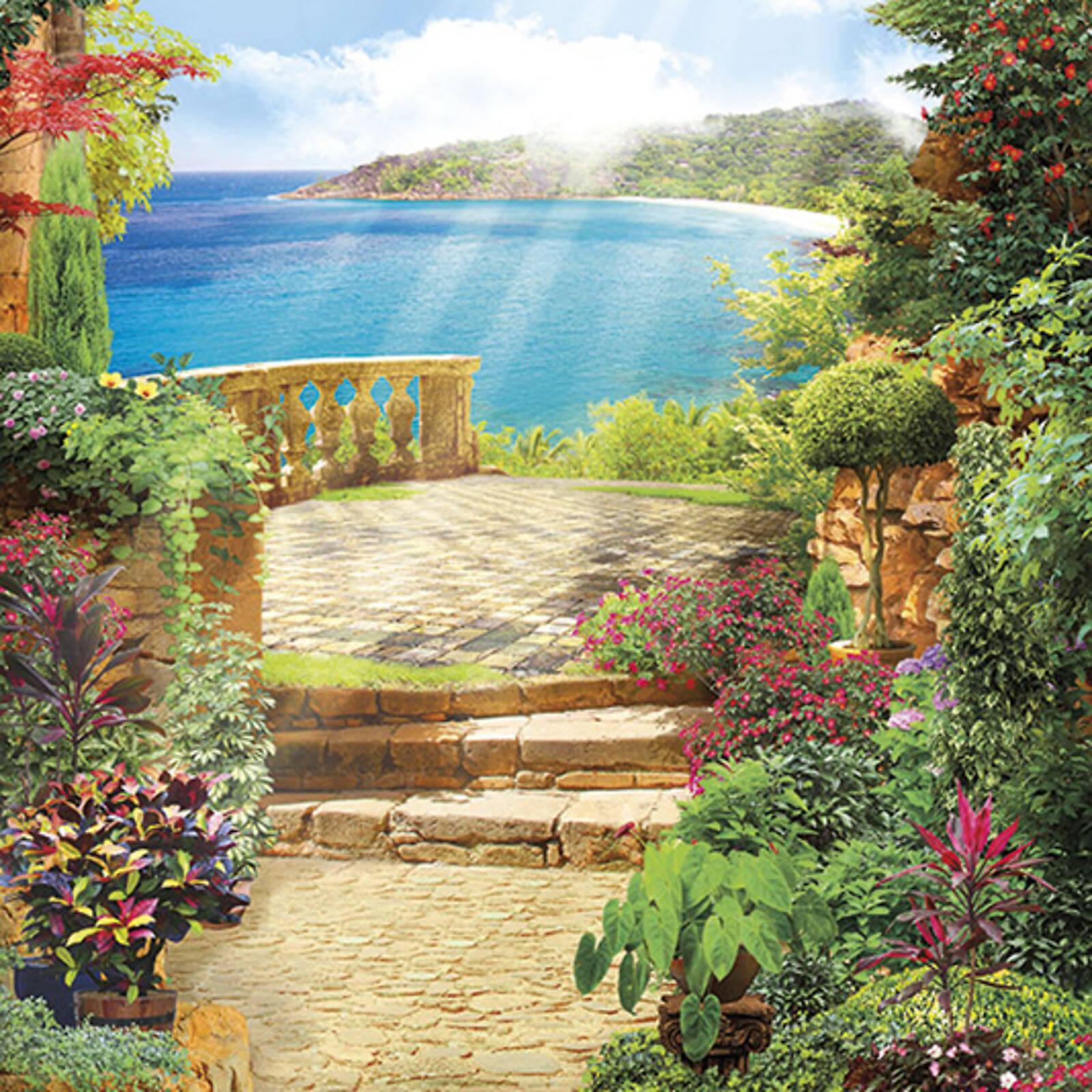 Изображения, нанесенные на мозаичные квадраты, не подвержены выгоранию под воздействием солнечных лучей.