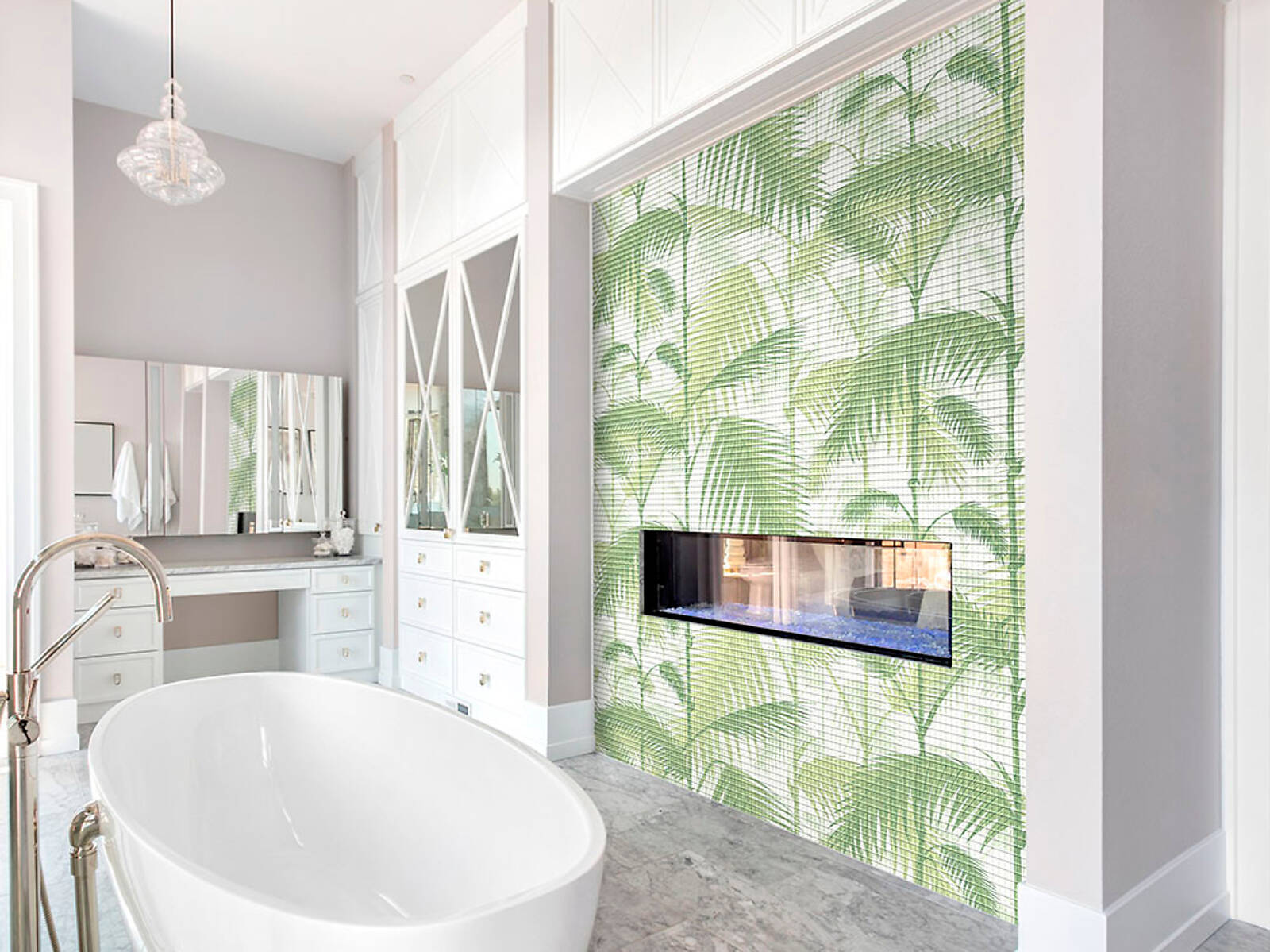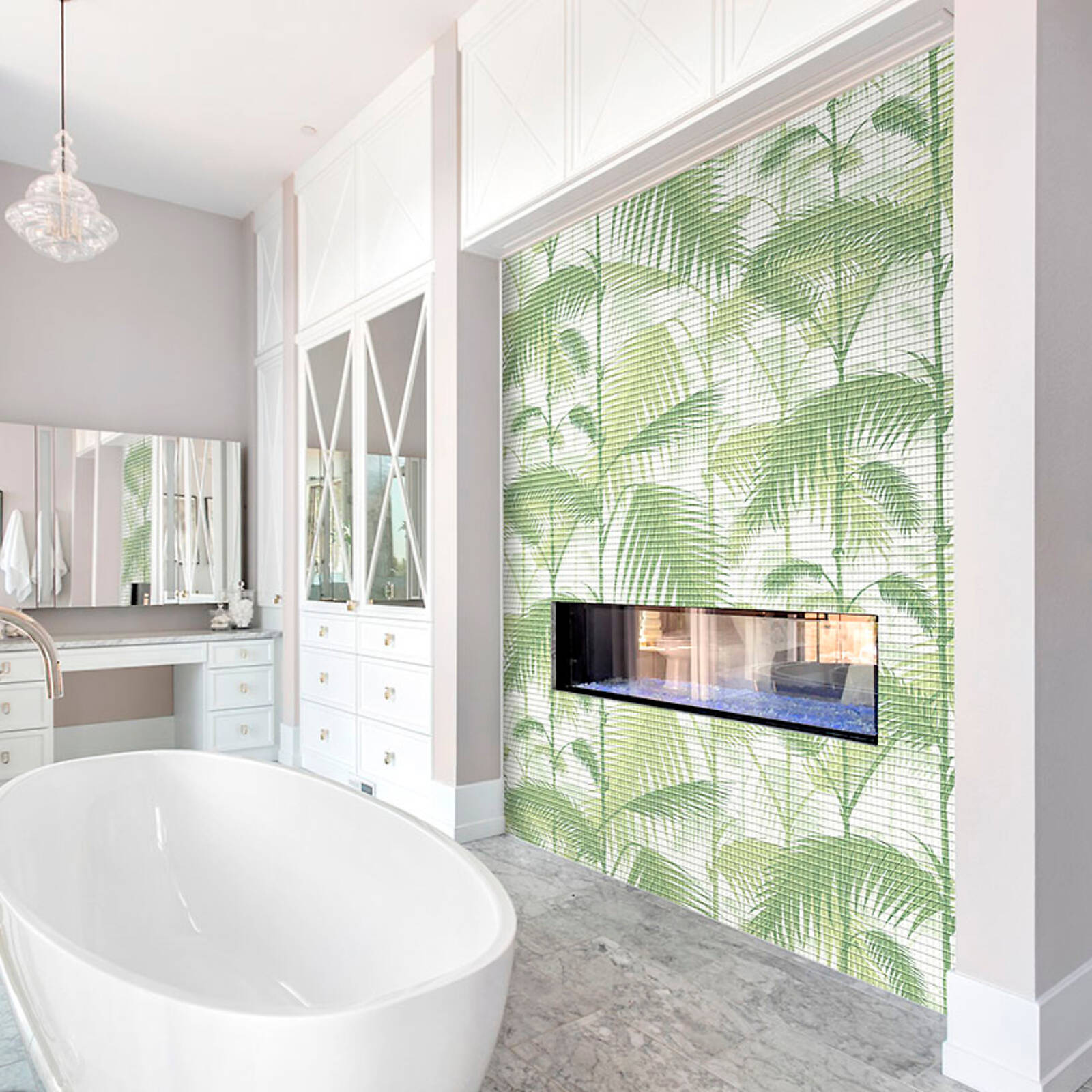 Материал не впитывает воду, что позволяет широко использовать его в отделке ванных комнат, душевых, кухонь, бассейнов и других влажных помещений.