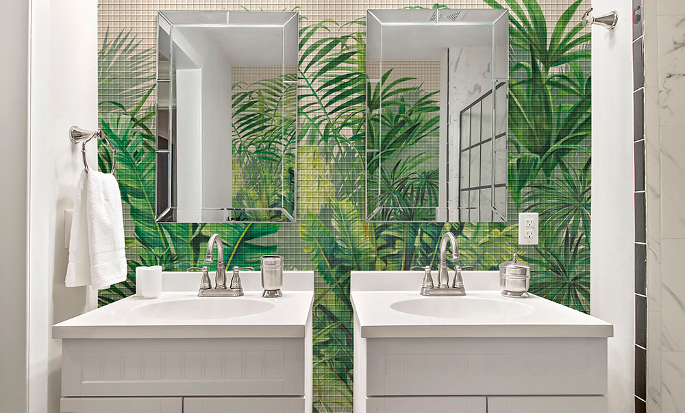 Материал не впитывает воду, что позволяет широко использовать его в отделке ванных комнат, душевых, кухонь, бассейнов и других влажных помещений.