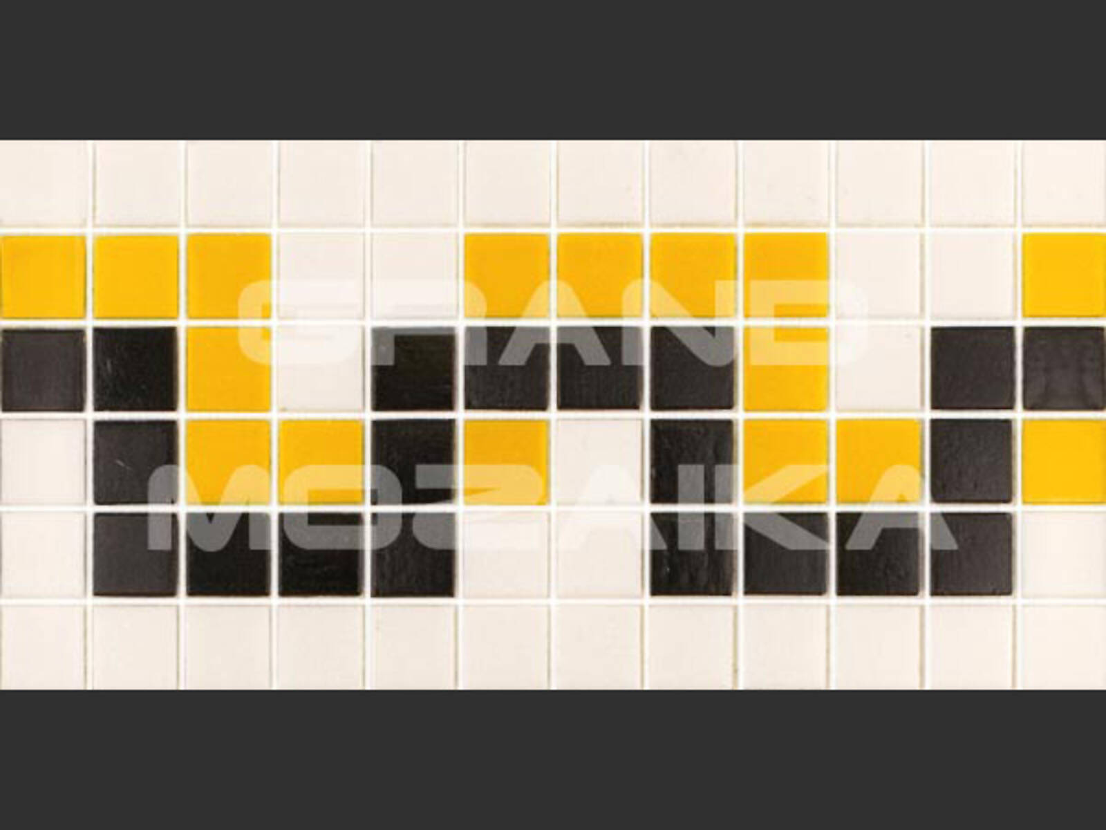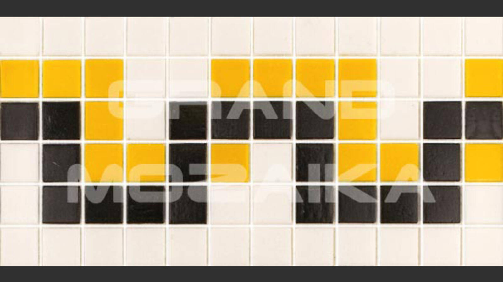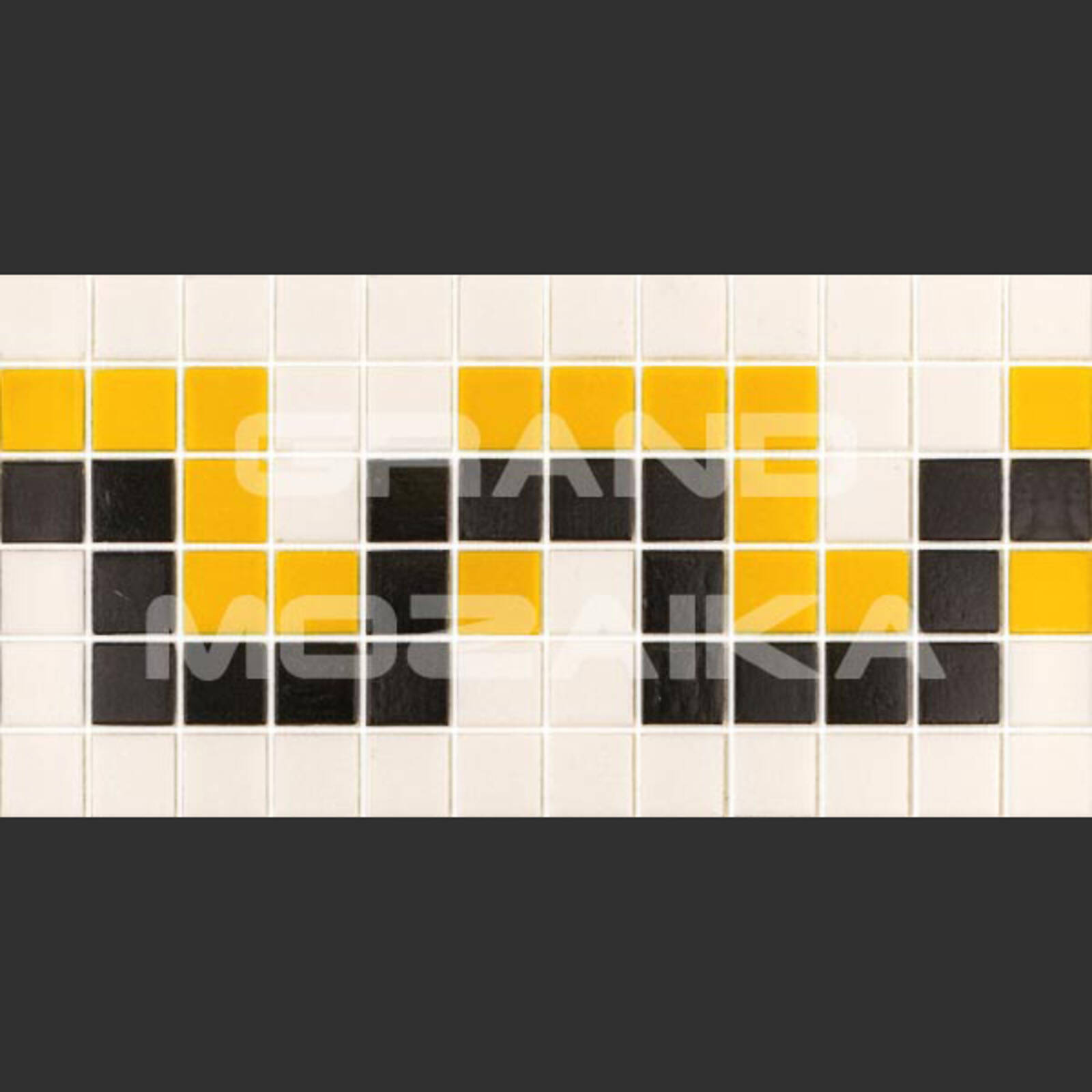 Матричный бордюр из коллекции для бассейнов Alma выполнен из глянцевых кусочков размером 20х20 мм. Бордюр украшен необычным рисунком желтого, черного и белого цветов в египетском стиле. Такой бордюр будет прекрасно смотреться в дизайне бассейна в сочетаниями со стеклянными мозаиками из других серий.