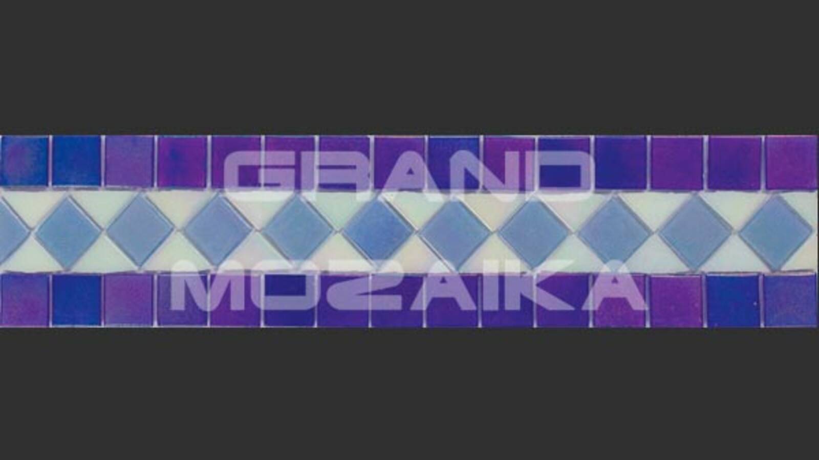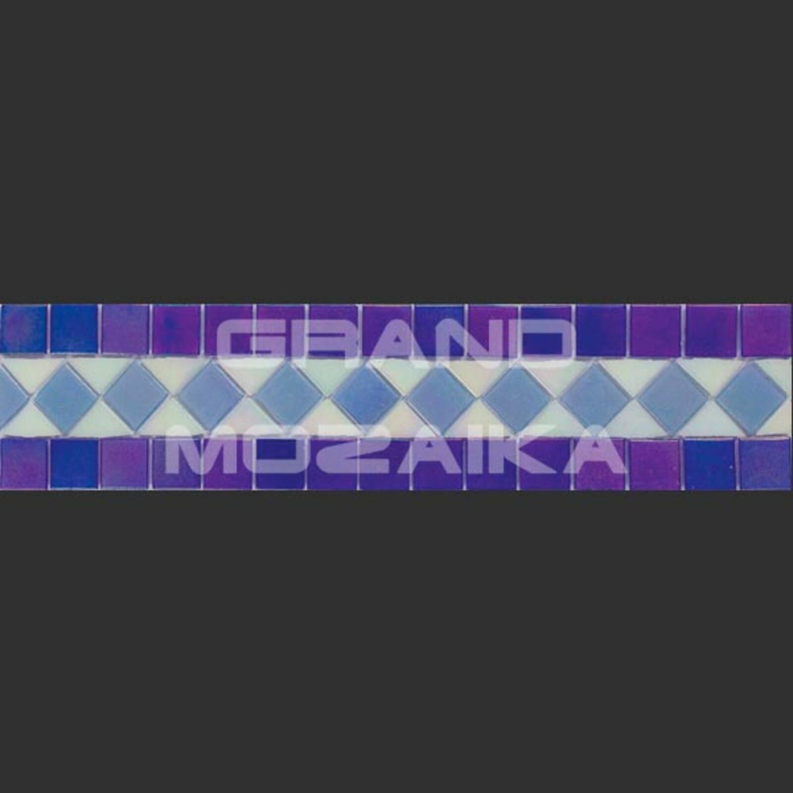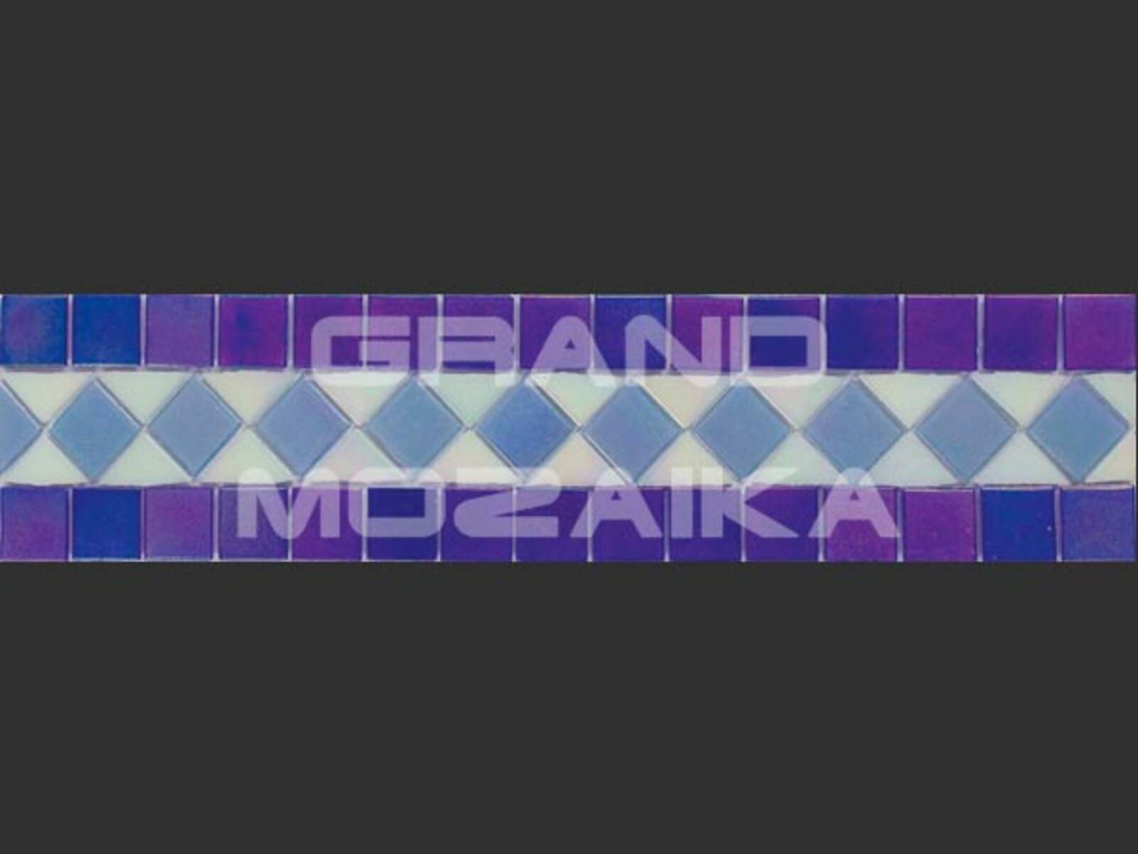 Матричный бордюр из коллекции для бассейнов Alma выполнен из небольших глянцевых кусочков. Бордюр украшен необычным геометрическим рисунком фиолетового, голубого и белого цвета.Такой бордюр будет прекрасно смотреться в дизайне бассейна в сочетаниями со стеклянными мозаиками из других серий.