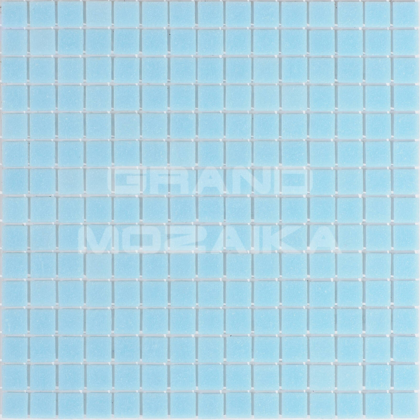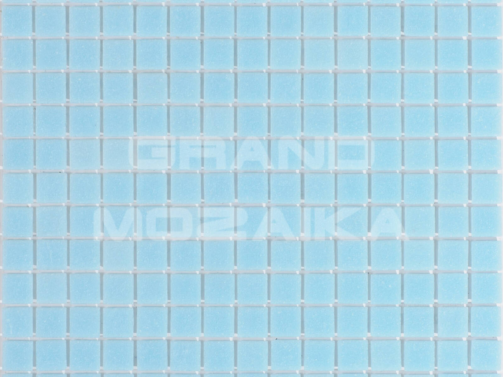 Стеклянная мозаика небесно-голубого цвета серии Sandy. Поверхность мозаики глянцевая, размер чипа - 20х20 мм. Размер сетки 327х327 мм. Мозаики отлично подходит для всех типов помещений и поверхностей.
