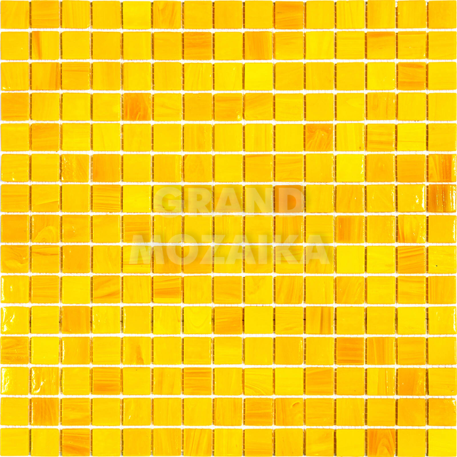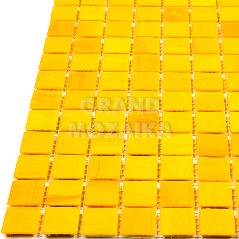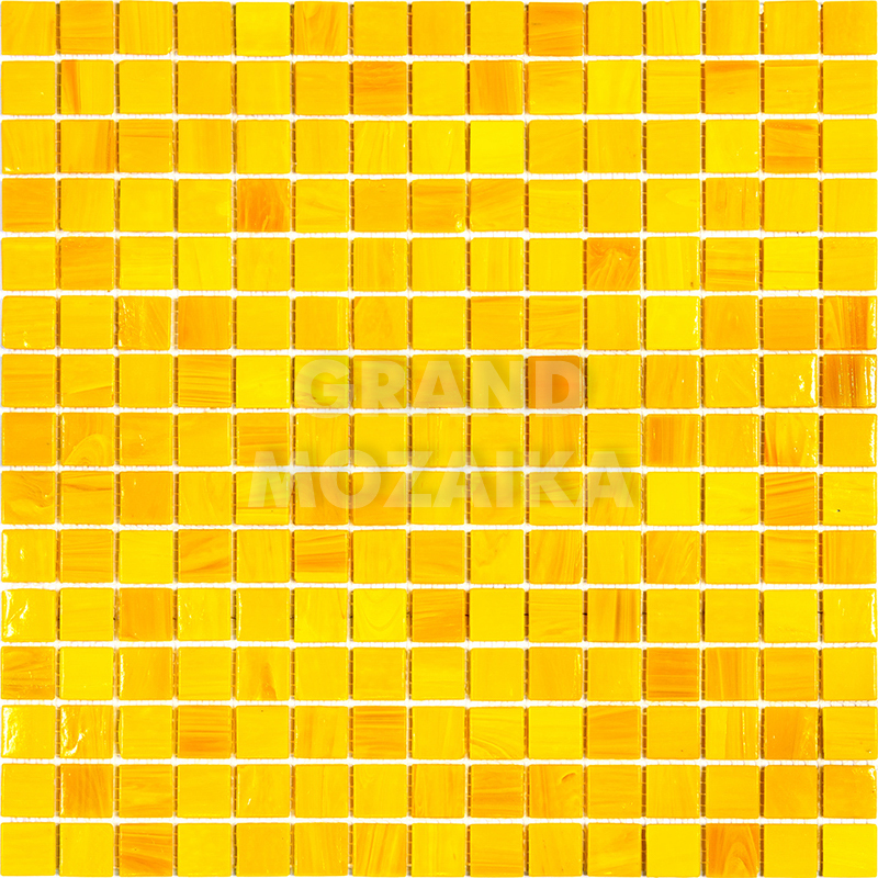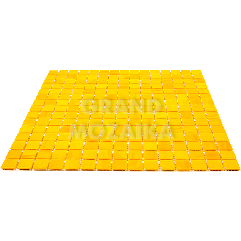 Стеклянная мозаика желтого цвета серии Sandy. Поверхность мозаики глянцевая, размер чипа - 20х20 мм. Размер сетки 327х327 мм, что позволяет легко и без особых навыков закреплять ее на поверхности. Такая мозаика украсит поверхность бассейна любой формы и размера.