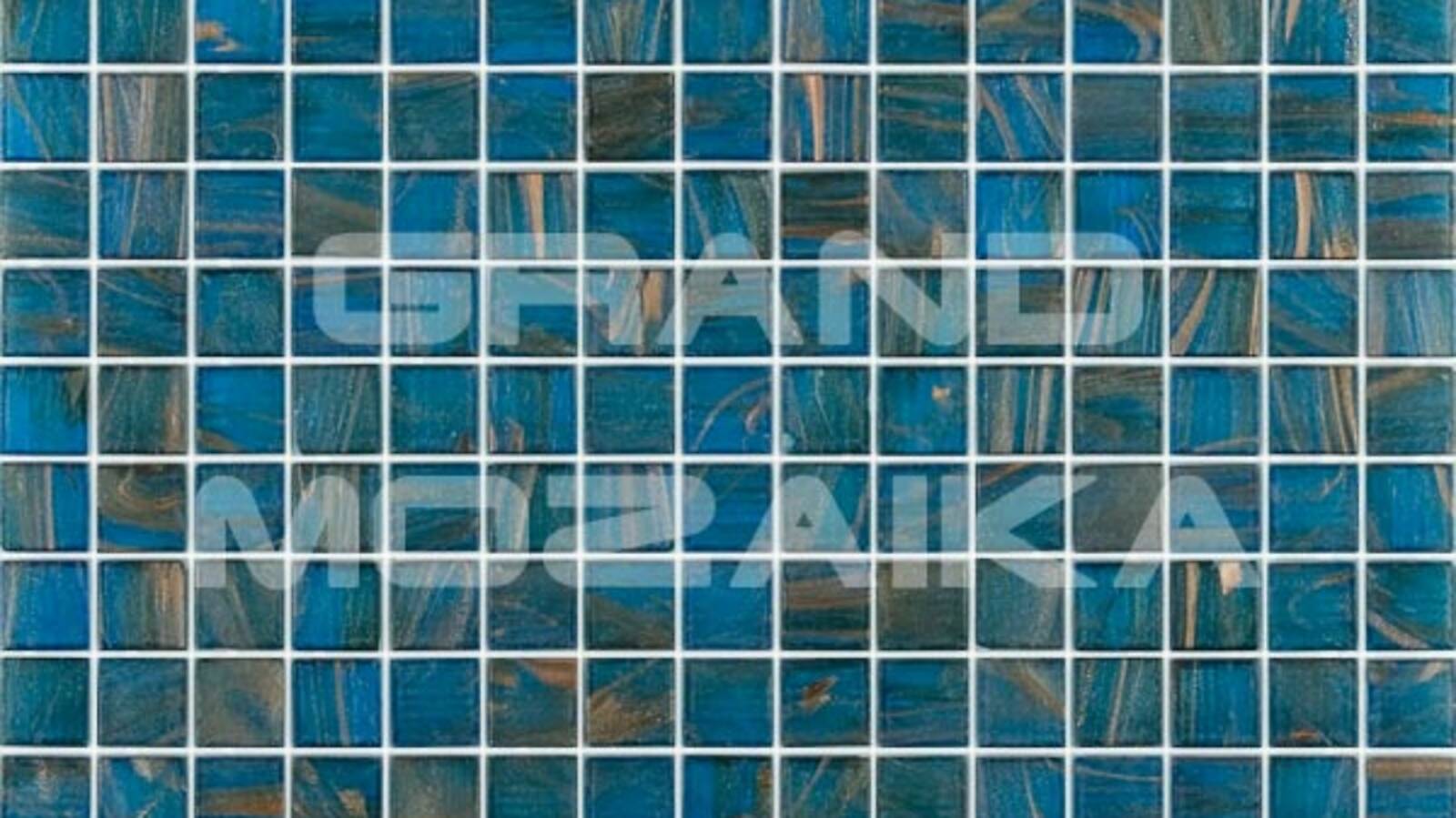 Мозаика для бассейнов серии Stella собрана из кусочков размером 20х20 мм. Каждый кусочек сине-зеленого оттенка не похож на соседний своим необычным размытым рисунком, напоминающим натуральный полудрагоценный камень. Такая мозаика добавит колорита любому бассейну, сауне или ванной комнате.