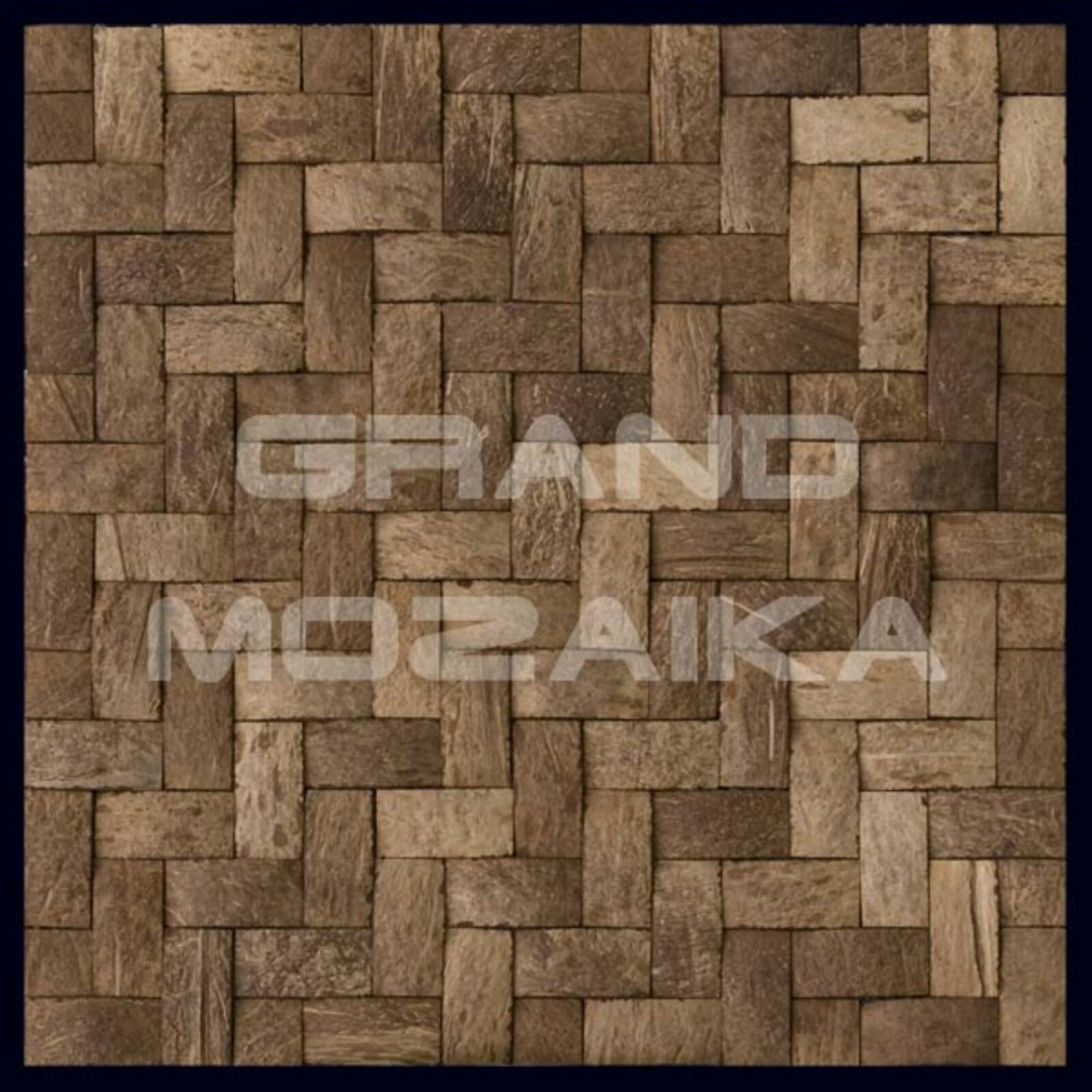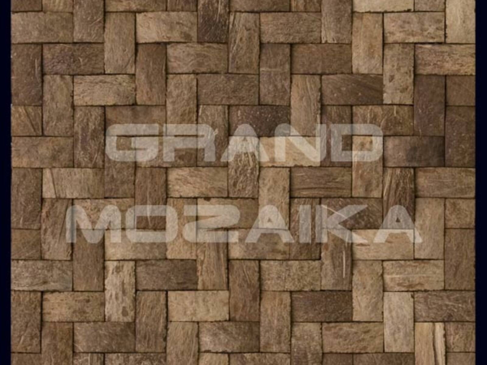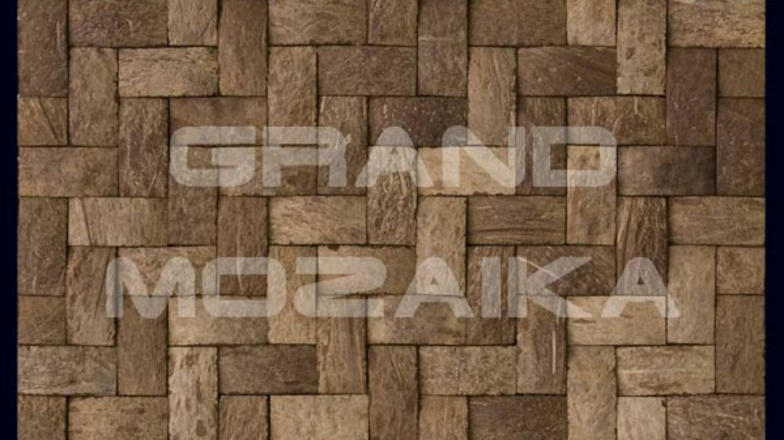 Мозаика Exotica серии Coco Mosaic выполнена из скорлупы кокосового ореха. Кокосовая скорлупа, очень прочный материал, поэтому мозаика из него может выдержать механические воздействия и удары. Кокос произрастает в жарких влажных странах, поэтому он устойчив к влаге и воздействию температур. Такую мозаику можно использовать для облицовки жилых помещений, это экологически чистый материал. Представленное полотно размером 300х300 выполнено из небольших кусочков, как будто переплетенных друг с другом.