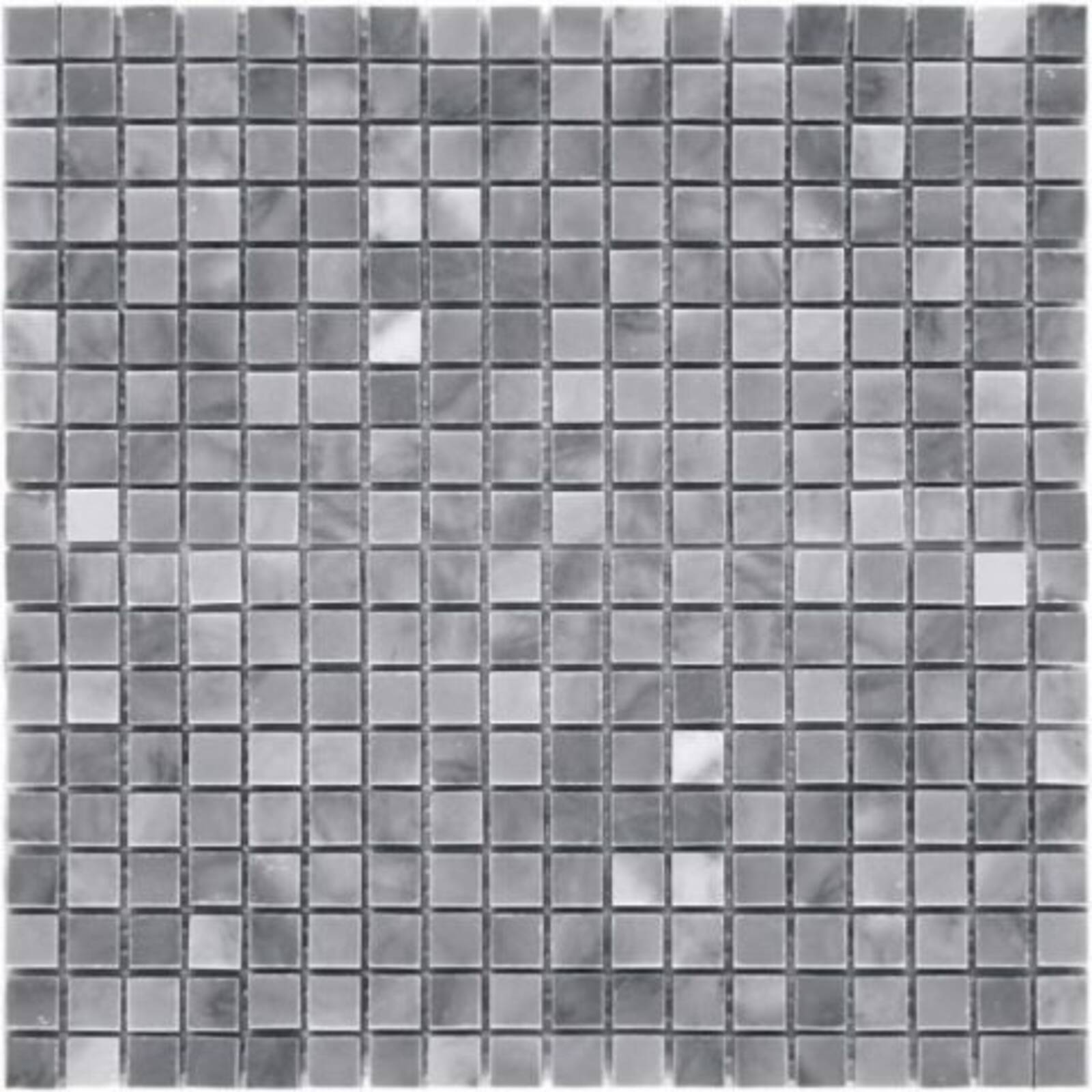 Мозаика из натурального камня серии Adriatica состоит из маленьких кусочков размером 15х15 мм. Полотно 305х305 выполнено из полированного серого мрамора с характерным рисунком. Такую мозаику можно использовать в различных помещениях, она прослужит гарантированно долго и не поменяет своих свойств.