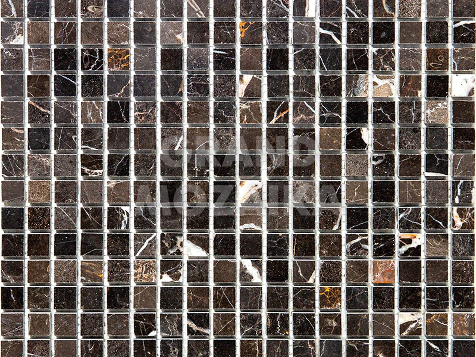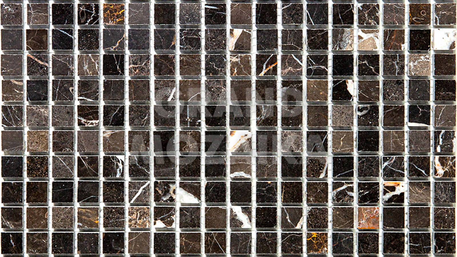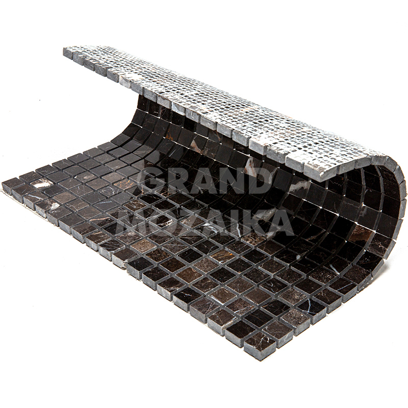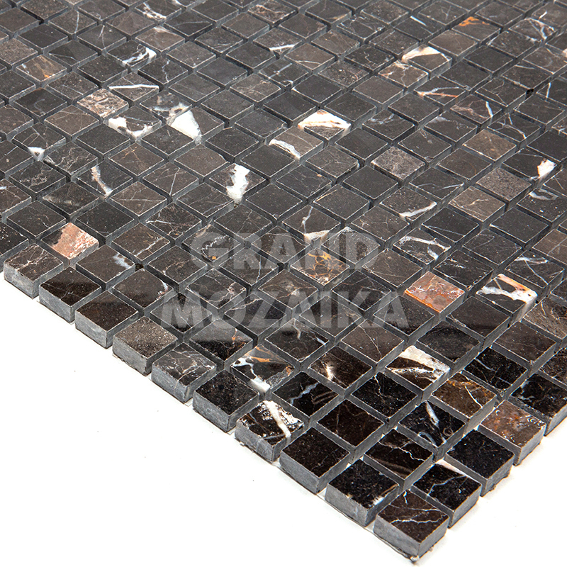 Мозаика из натурального камня серии Adriatica состоит из маленьких кусочков размером 15х15 мм. Полотно 305х305 выполнено из полированного серо-коричневого мрамора с характерным рисунком. Такую мозаику можно использовать в различных помещениях, она прослужит гарантированно долго и не поменяет своих свойств.