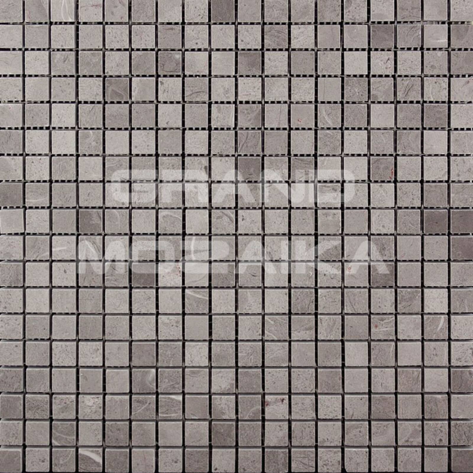 Мозаика из натурального камня серии Adriatica состоит из маленьких кусочков размером 15х15 мм. Полотно 305х305 выполнено из полированного светло-серого однотонного мрамора практически без рисунка. Такая мозаика прослужит долгие годы и не потеряет своих свойств.