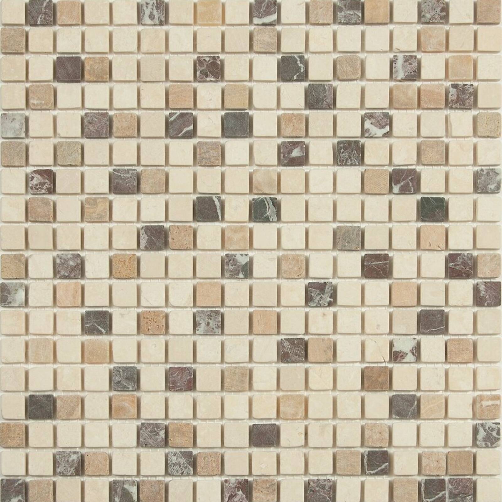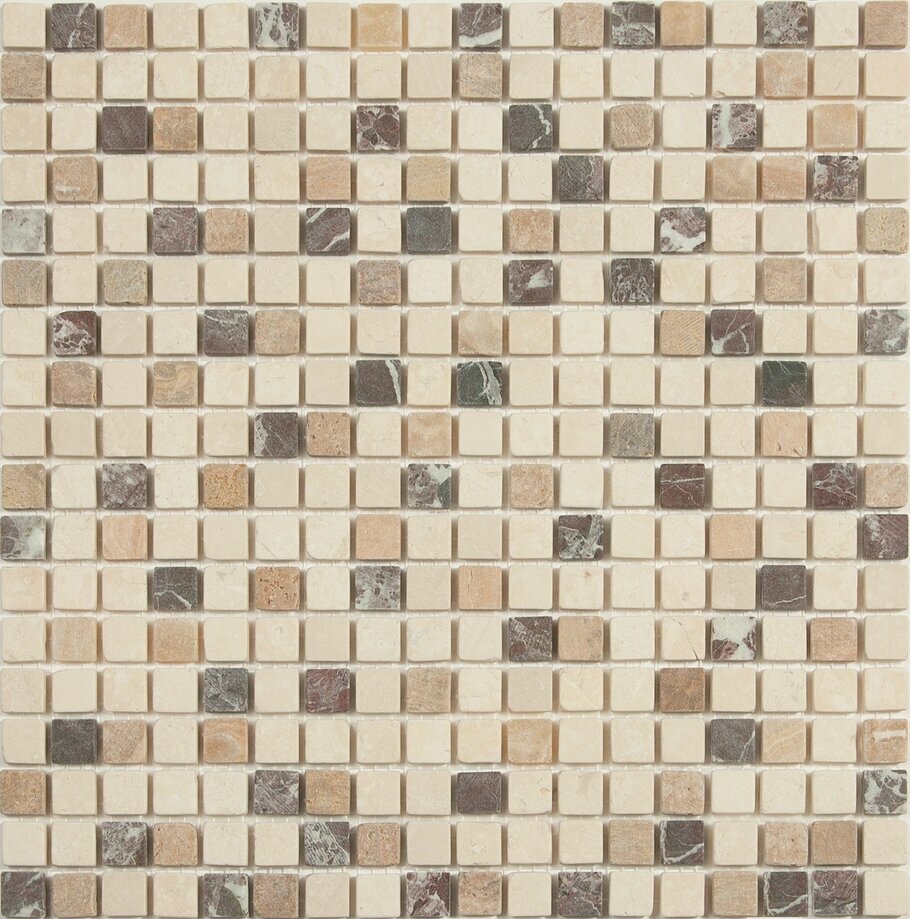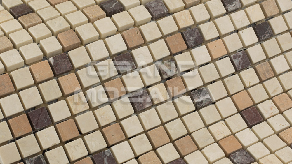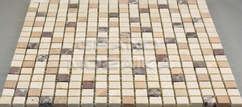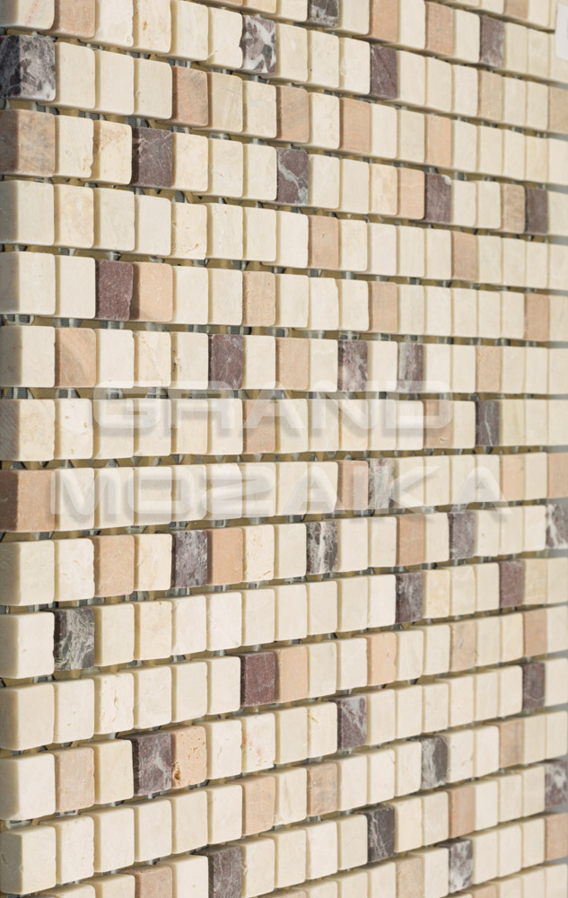 Мозаика из натурального камня серии Stone сделана из кусочков размером 15*15 мм расположенных в хаотическом порядке. Бежево-коричневая гамма полотна и античный рисунком привнесут естественности в интерьер и нужным образом завершат художественную задумку дизайнера. Прекрасно подходит как для внутреннего, так и внешнего декора.