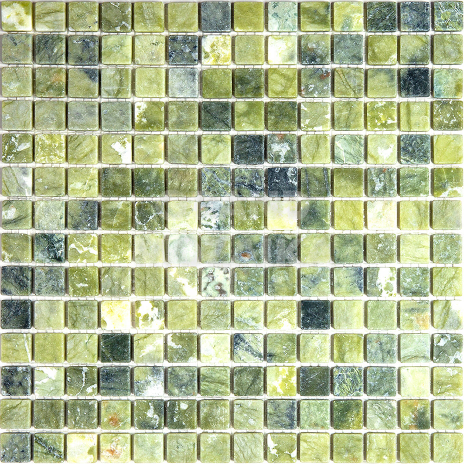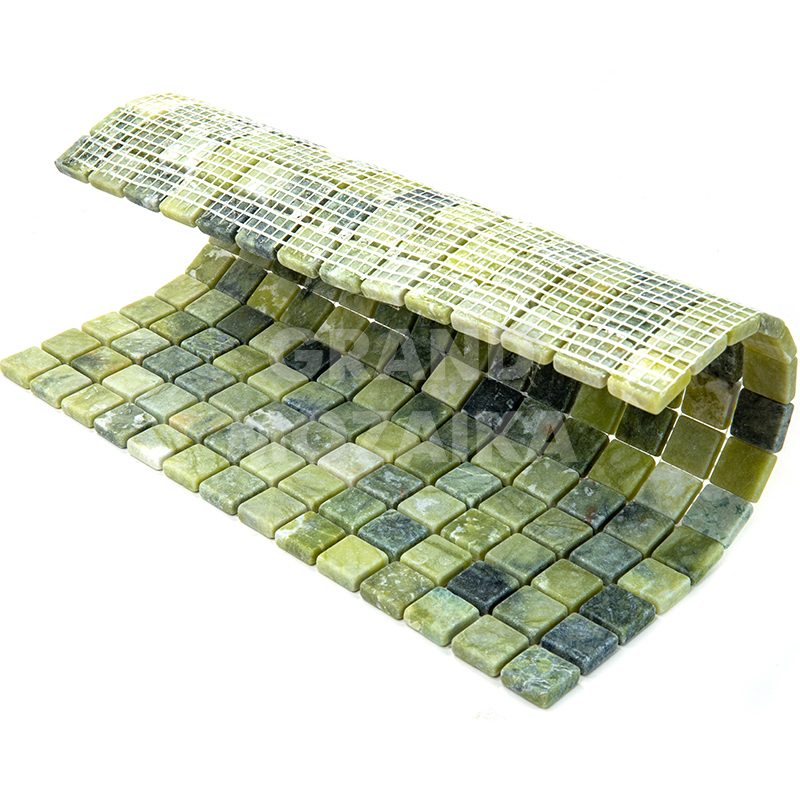 Мозаика из натурального камня серии Adriatica состоит из маленьких кусочков размером 20х20 мм. Полотно 305х305 выполнено из состаренного зеленого мрамора с характерным рисунком. Мозаика из натурального камня один из самых надежных материалов, он не теряет своих свойств десятилетиями.