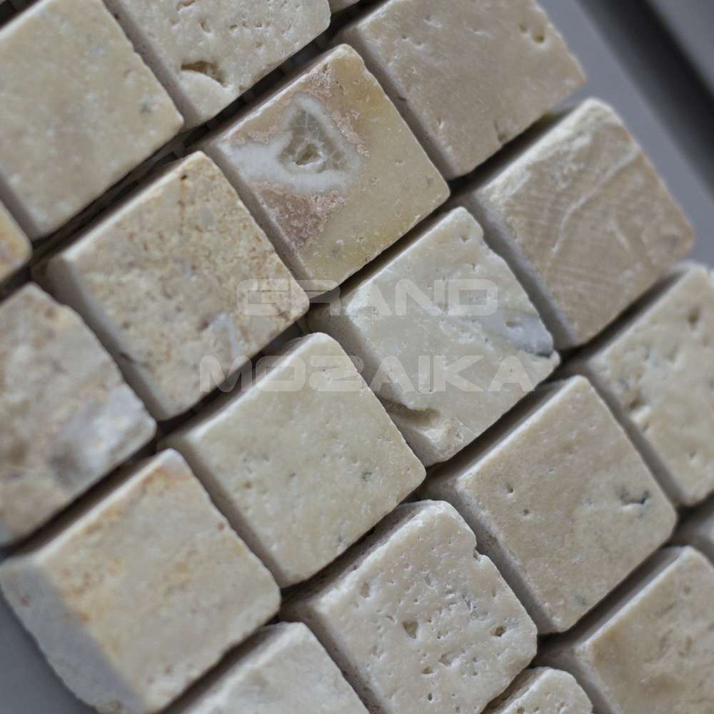 Мозаика из натурального камня серии Antiko состоит из маленьких кусочков размером 20х20 мм. Полотно 305х305 состоит из мрамора со срезанной поверхностью толщиной 10 мм. Такая мозаика прослужит гарантированно долго и не потеряет своих свойств.