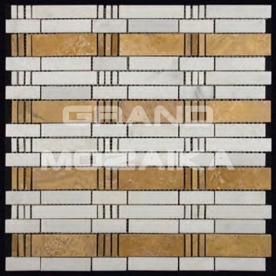 Мозаика из натурального камня серии S-Line выложена из коричневого и серого полированного мрамора произвольной формы. Кусочки различной формы выложены в строгий геометрический рисунок как на древних фресках. Такая мозаика украсит любой интерьер.