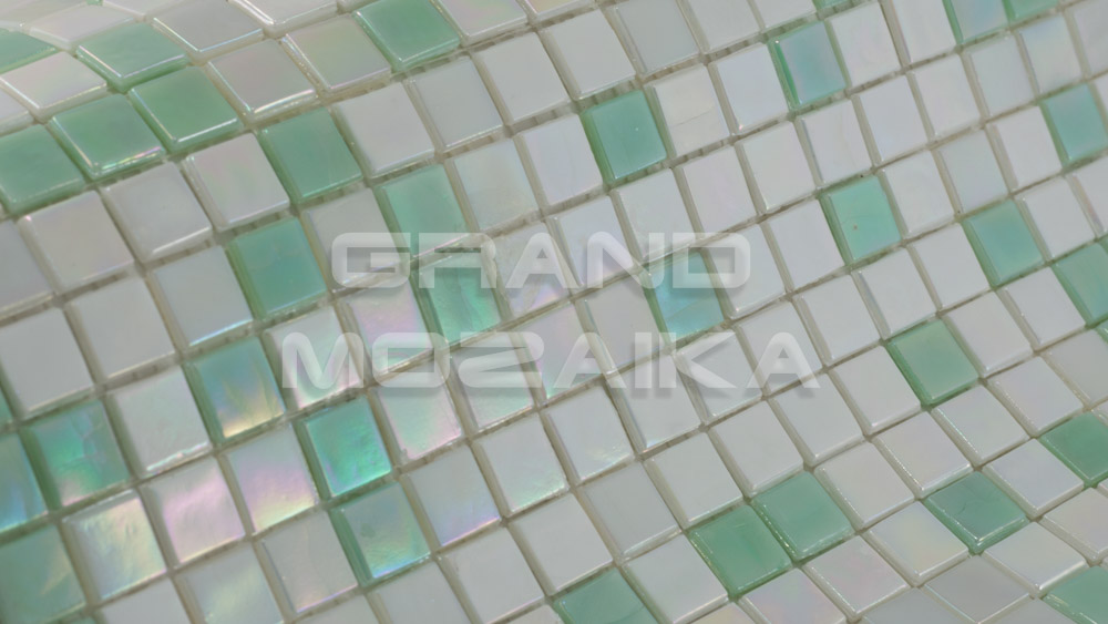 Стеклянная мозаика серии Flower представляет собой мозаичное панно, состоящее из стеклянных чипов белого и зеленого цвета перламутровым эффектом. Размер чипа 15 на 15 мм. Размер сетки 300 на 300 мм. Толщина - 4 мм. Благодаря разнообразию оттенков, можно получить самые оригинальные сочетания конфигураций и цветов. Мозаика данной серии идеально вписывается в любой интерьер.