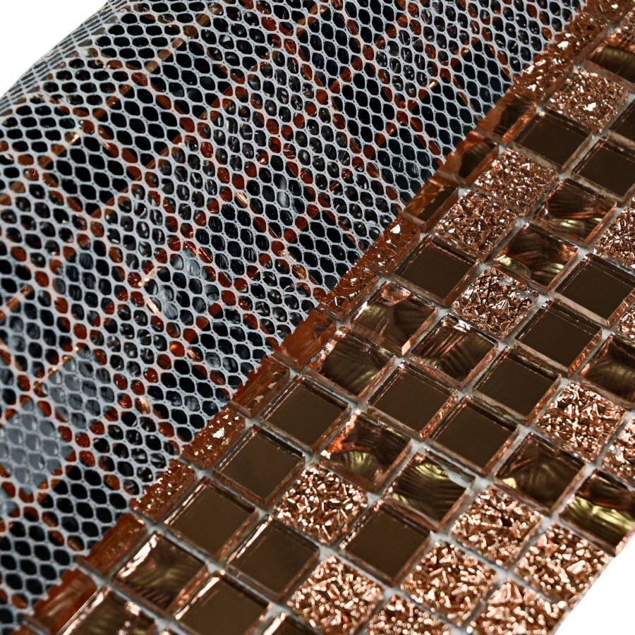 Монтировать следует только на бесщелочные, бескислотные клеи, так как в составе данной мозаики амальгама (фольга). Если использовать цементный клей, данная мозаика может почернеть.