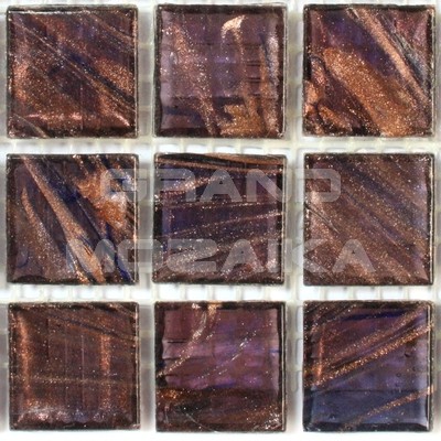 Стеклянная полупрозрачная мозаика фиолетового цвета серии Goldstar. Рисунок - золотые разводы. Размер чипа 20х20 мм, толщина 4 мм. Мозаичное стекло отлично переносит значительную температуру, поэтому мозаикой можно облицовывать и украшать камины. Отлично подходит также для помещений с влажной средой.