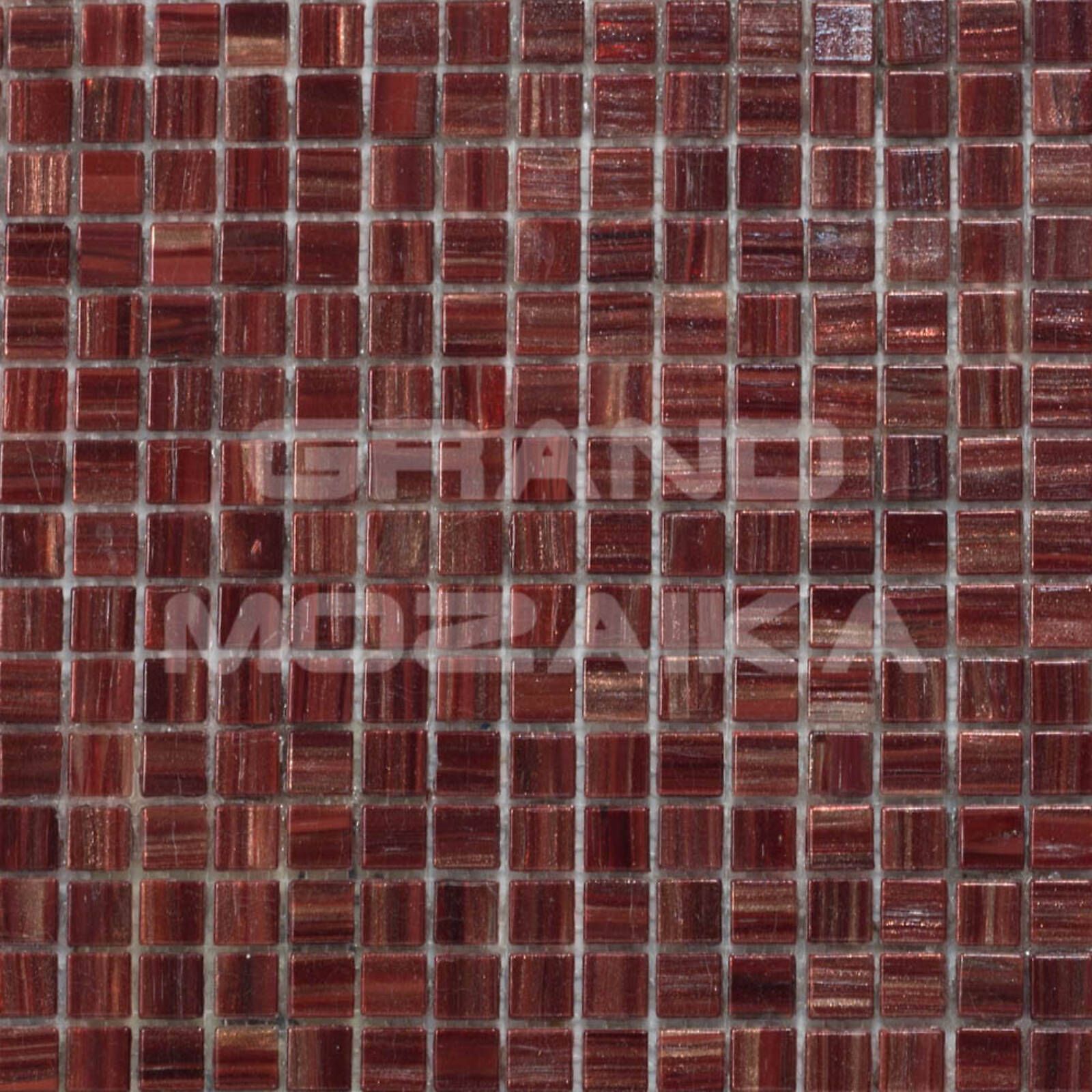 Стеклянная полупрозрачная мозаика серии Goldstar. Цвет бордовый (ближе к коричневому) с примесями золотого. Полотно размером 327х327 мм состоит из плиток 20х20 мм. Толщина 4 мм. Отлично подходит для ванных комнат, саун, бань, кухонь. Благодаря гладкой поверхности на мозаичном стекле не селится грибок.