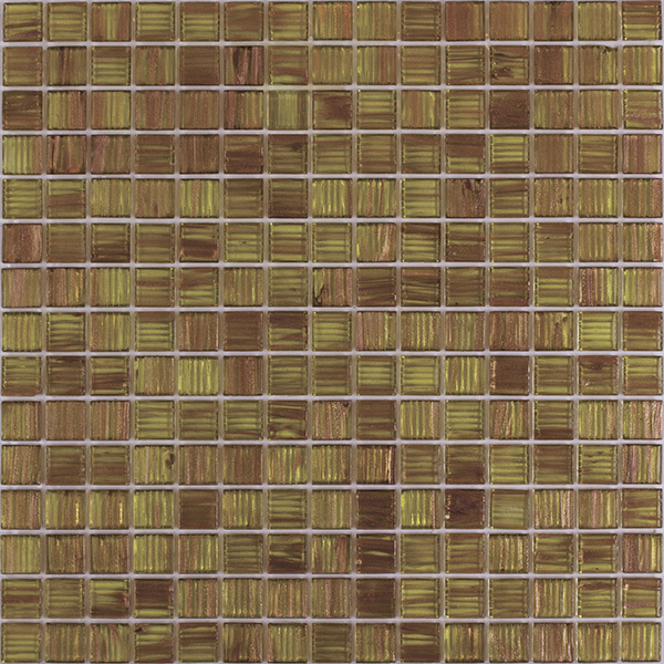 Мозаика стеклянная полупрозрачная серии Goldstar. Основной цвет золотой с добавлением более светлых разводов и золотых вкраплений. Толщина мозаики 4 мм. Поверхность глянцевая. Стеклянная мозаика на сетке (327х327 мм), за счет маленьких элементов (20х20 мм), легко повторяет поверхность стены или пола, сохраняя все дизайнерские решения.