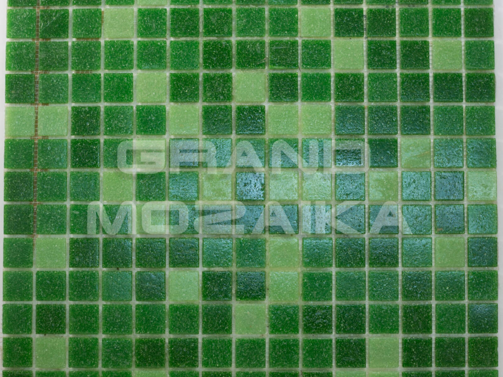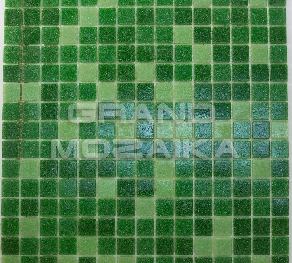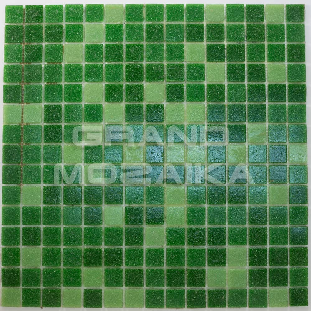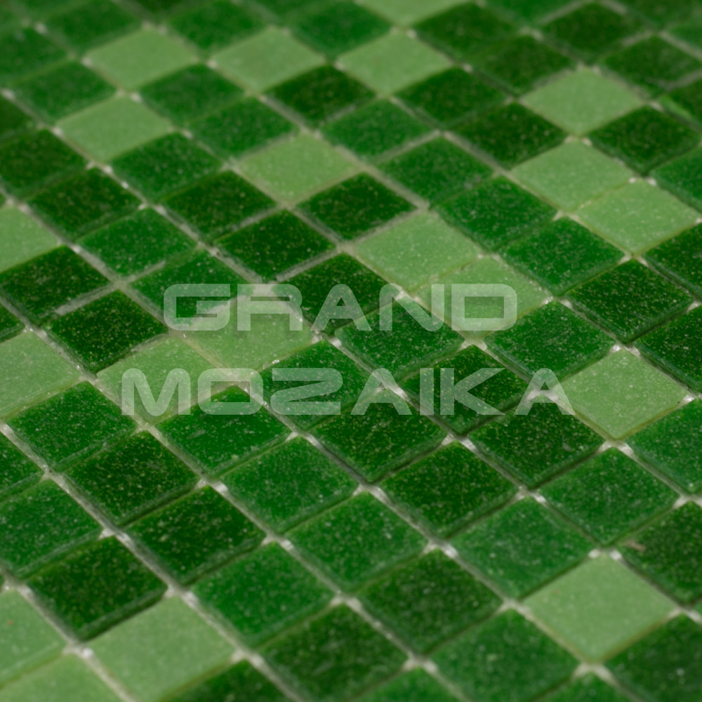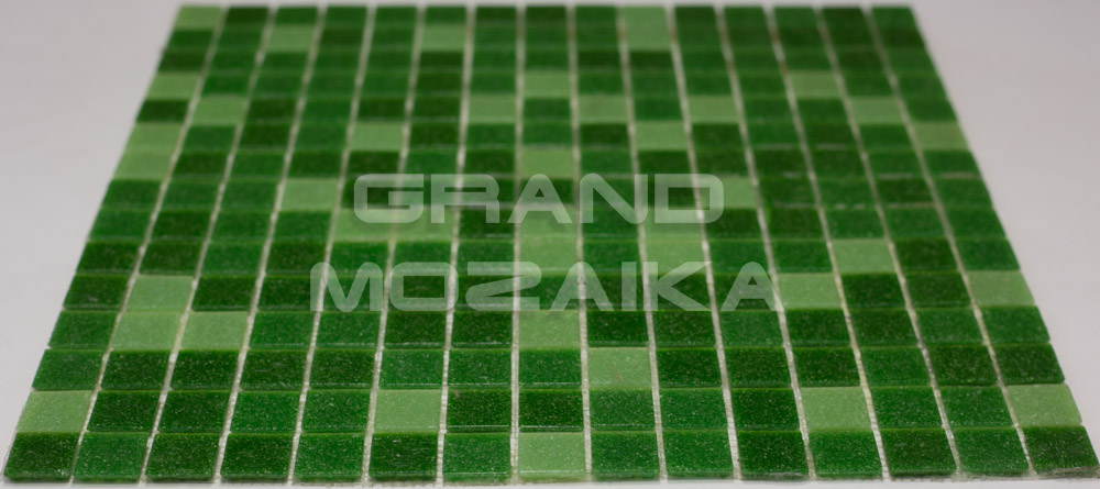 Мозаика для бассейнов серии Смеси из плиток размером 20х20 мм. Полотно 327х327 мм состоит из плиток разных оттенков зеленого цвета - от светлого до темного, не требует особых навыков монтажа. Такая мозаика украсит бассейн, подойдет для любых помещений с повышенной влажностью. Толщина 4мм. Поверхность матовая.