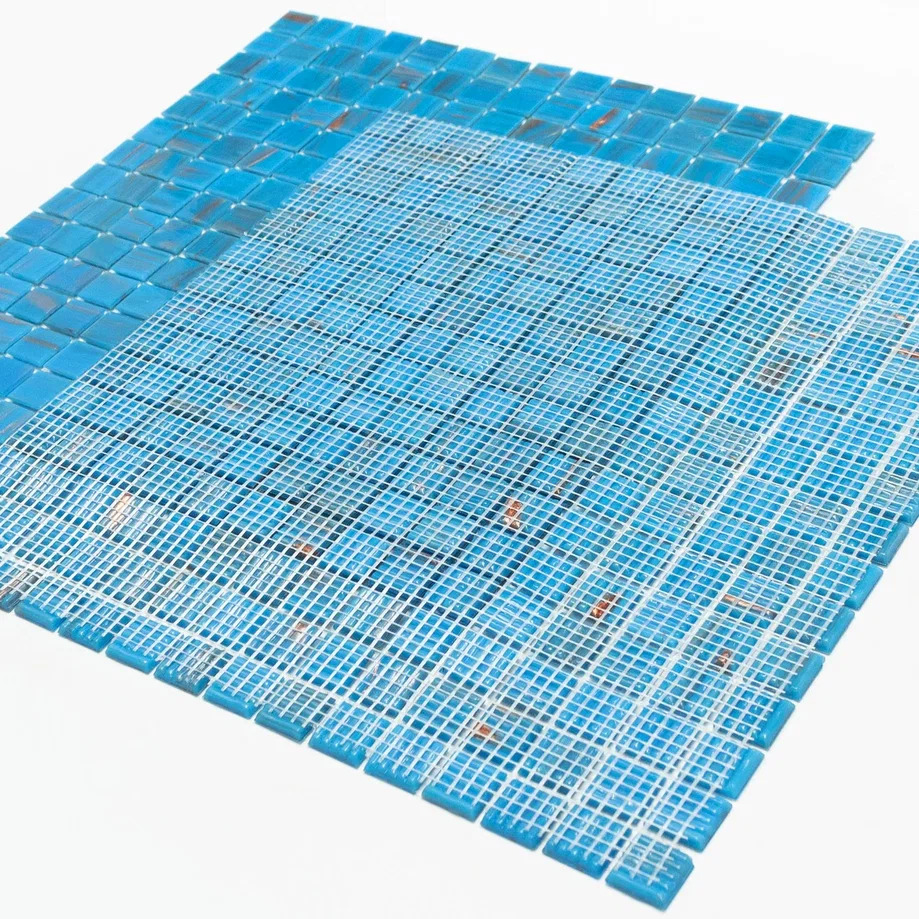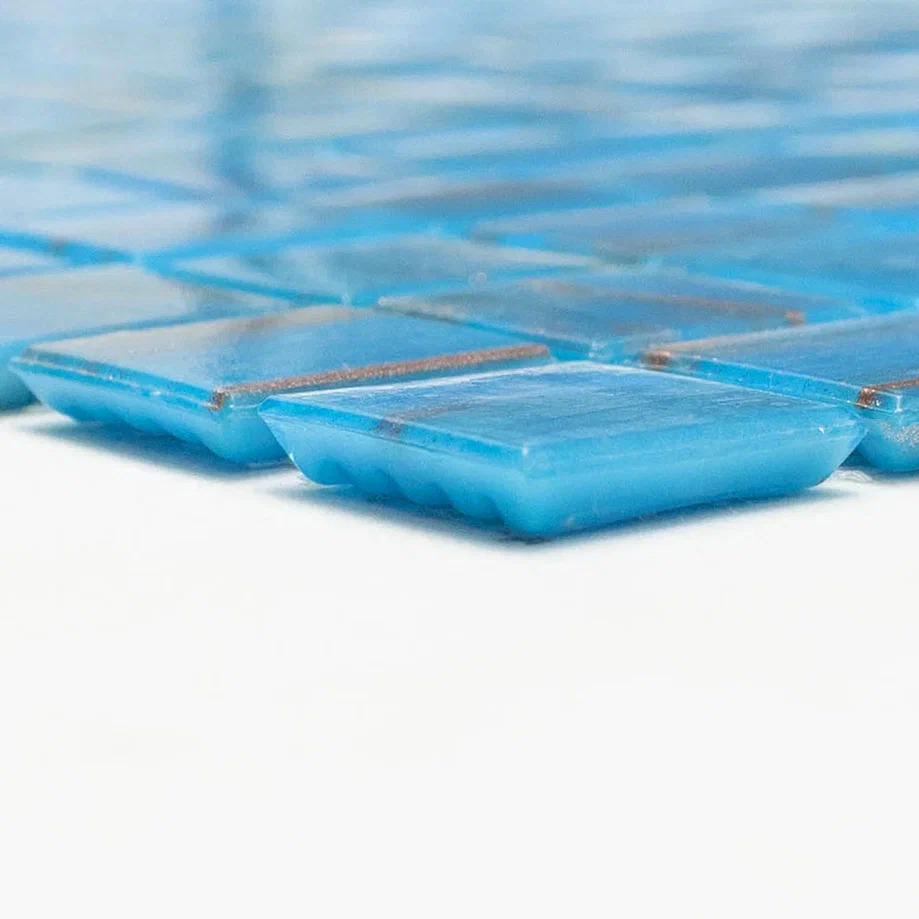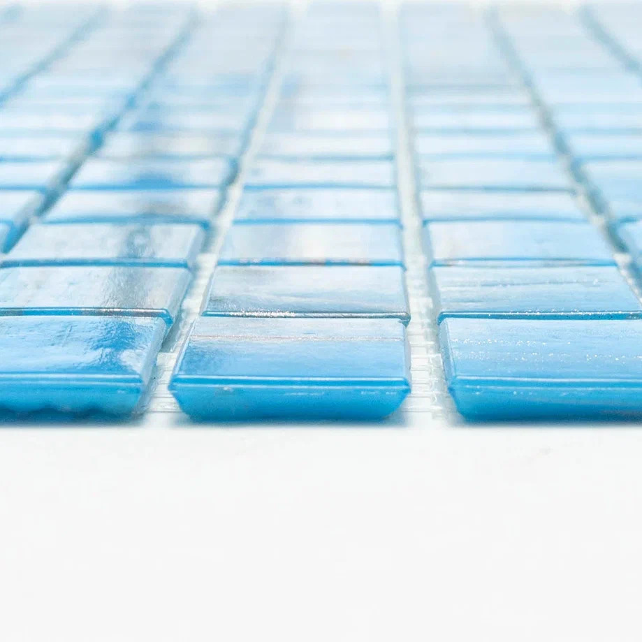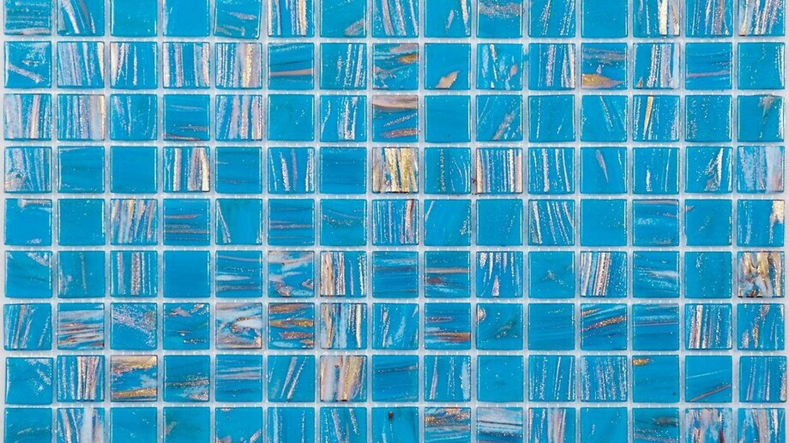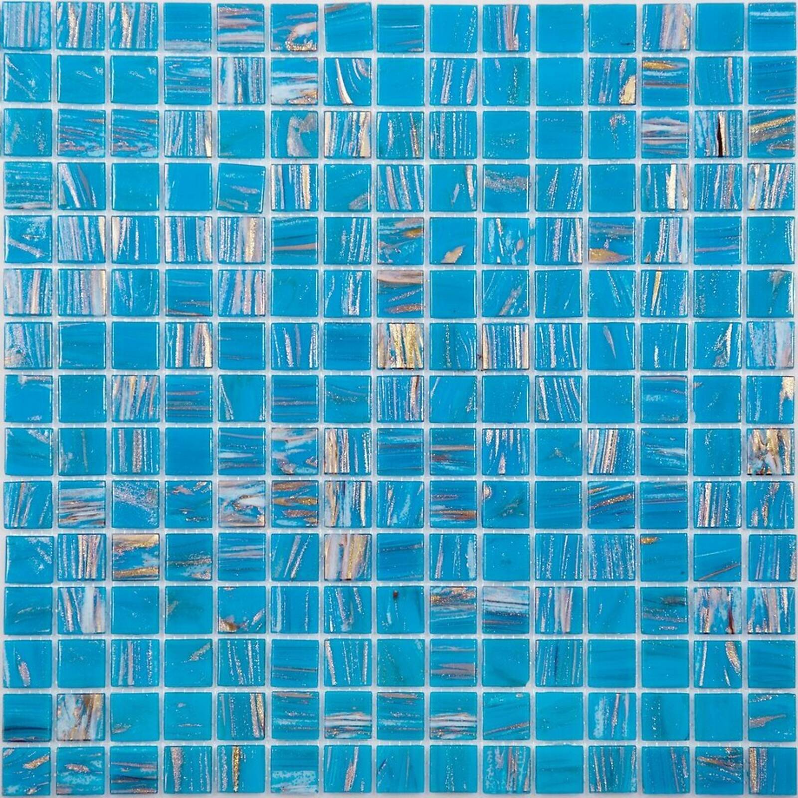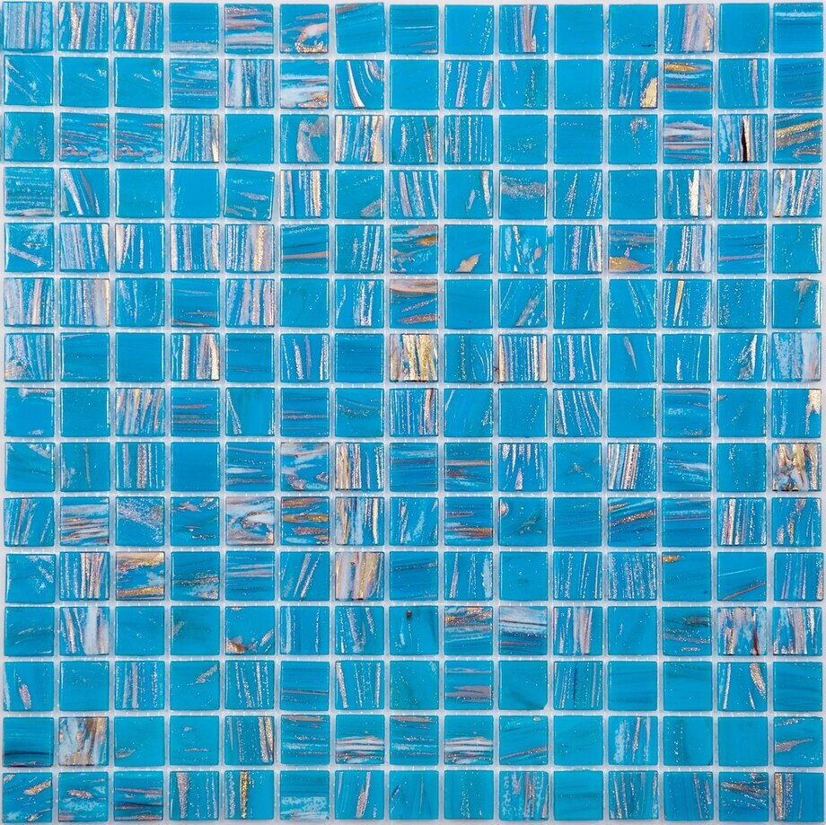 Стеклянная мозаика серии Golden состоит из светло-синих плиток с золотыми примесями. Полотно крепится к сетке размером 327*327 мм. Модули размером 20*20*4мм. Поверхность блестящая, глянцевая. Мозаика серии Golden удовлетворит запросы самых взыскательных потребителей, сделает помещение дорогим и запоминающимся.
