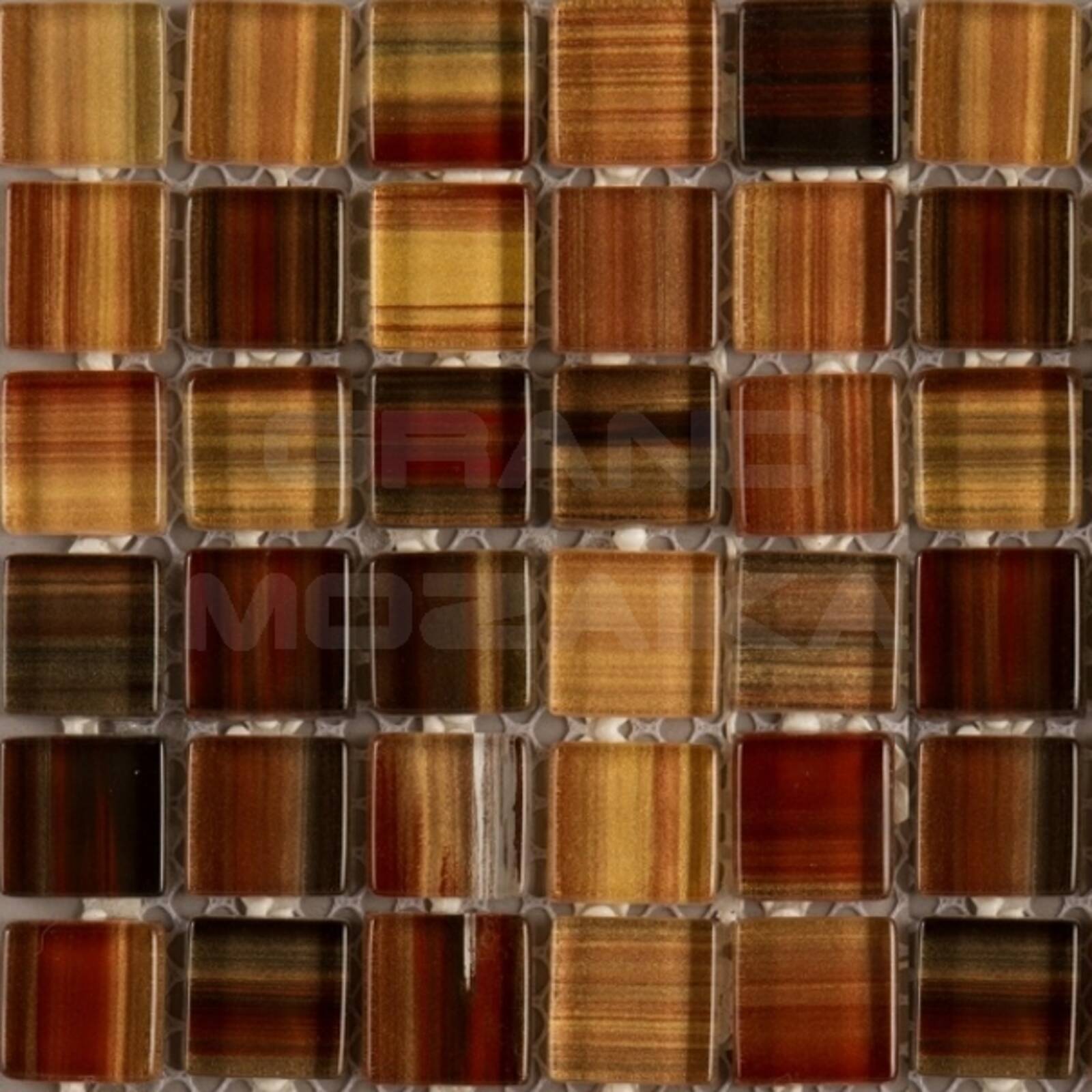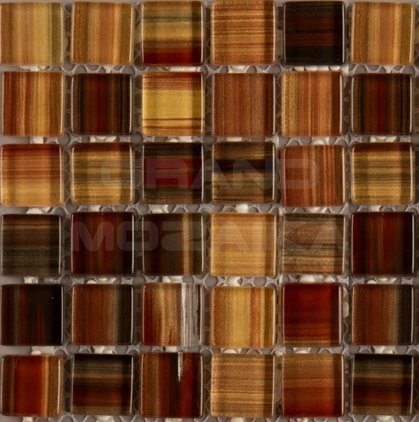 Стеклянная мозаика сочетающая в себе различные оттенки коричневого цвета серии Ethnic. Поверхность мозаики глянцевая, размер чипа - 25,8х25,8 мм. Размер сетки 300х300 мм. Вы можете использовать такую мозаику в самых различных помещениях, так как она отличается высокой водонепроницаемостью и прочностью.