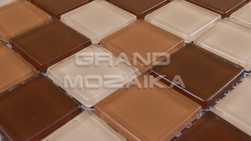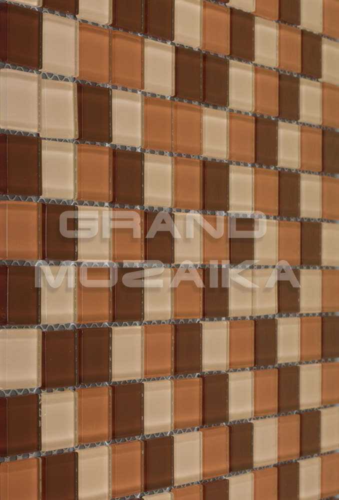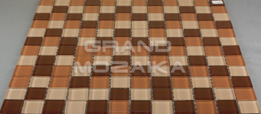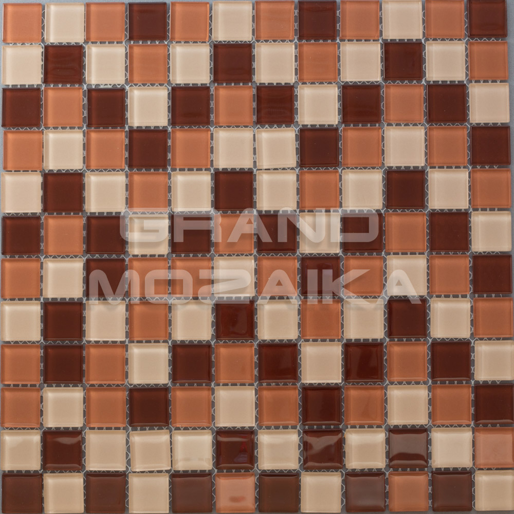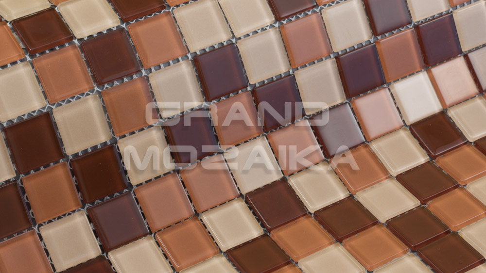 Мозаика стеклянная серии Crystal состоит из плиток бордово-коричневых оттенков. Полотно размером 327*327 мм тыльной стороной крепится к сетке. Модули размером 25*25*4мм. Панно из мозаики микс зрительно расширит пространство. Прекрасно может использоваться при облицовки каминов и бассейнов.