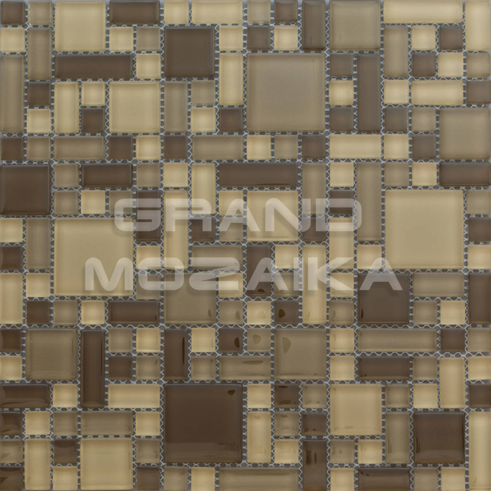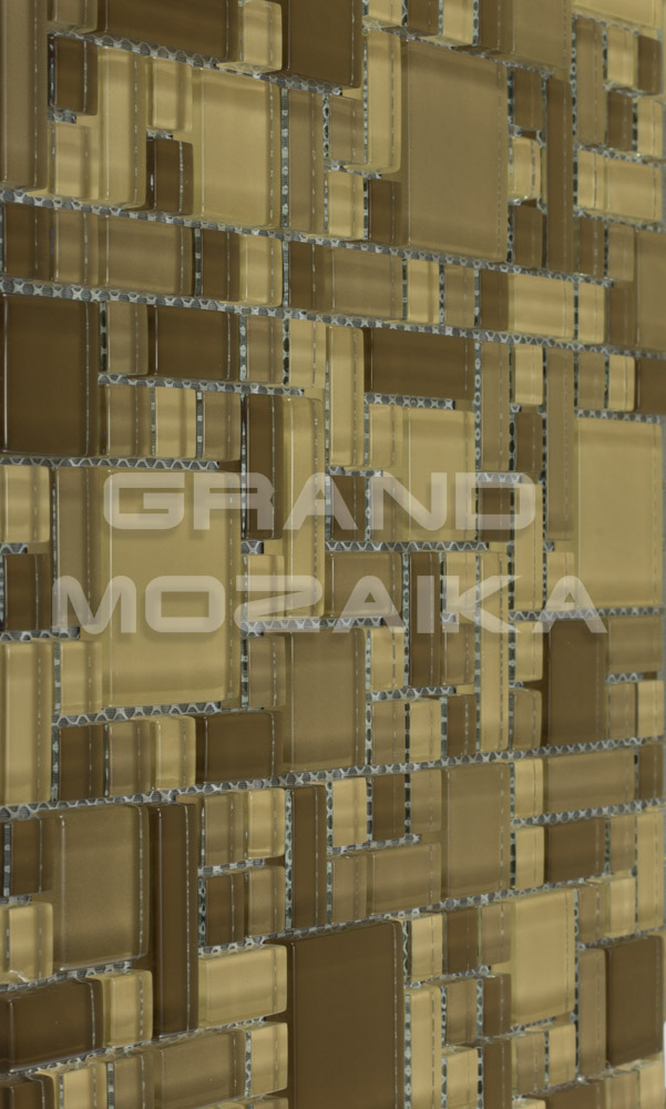 Стильная стеклянна мозаика серии Exclusive состоит из гладких плиток квадратной и прямоугольной формы разного размера и необычной геометрической компоновки. Монтаж - сетка размером 298х298 мм. Утолщенная мозаика 8 мм выдерживает любые физические и химические нагрузки. Бежевые и коричневые тона мозаики придадут помещению теплоту и естественность.