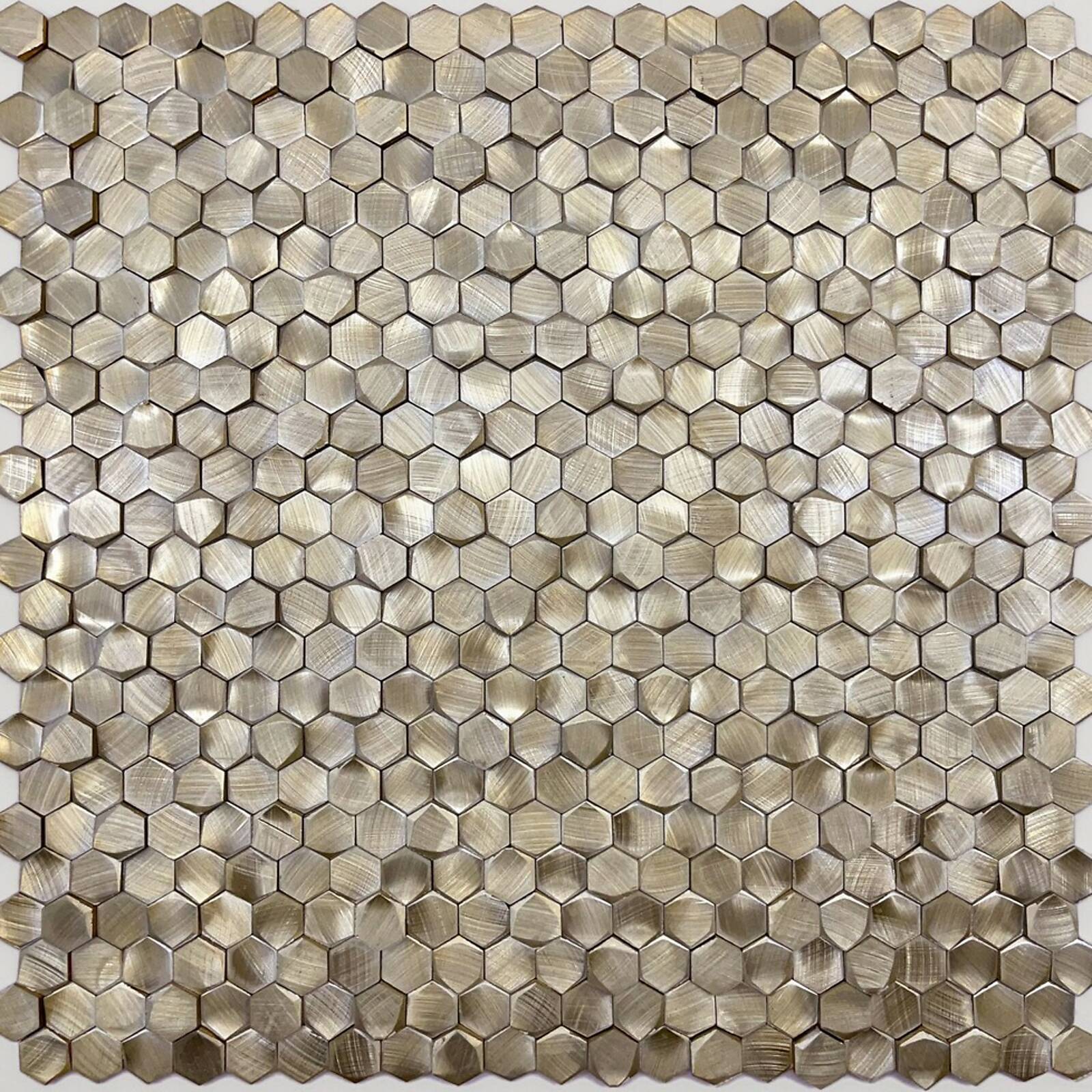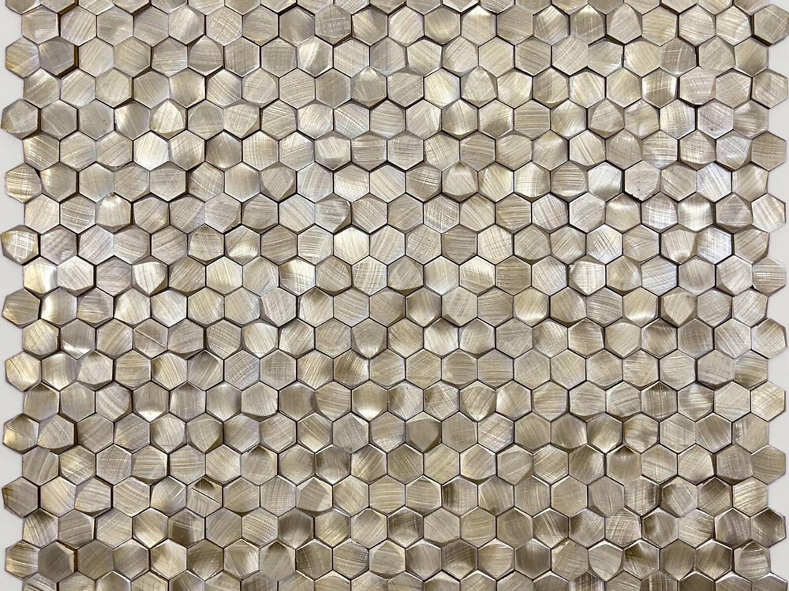 Мозаика выполнена из анодированного алюминия с тонированием под золото или бронзу. Использование затирки с этой моделью не предполагается. Не рекомендуется использовать на полу, т.к. поверхность мозаики очень ребристая, рельефная и её трудно будет чистить.