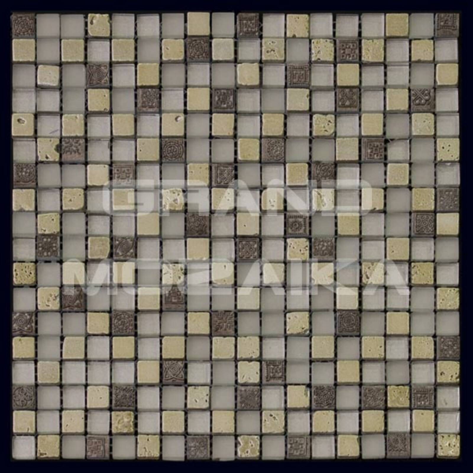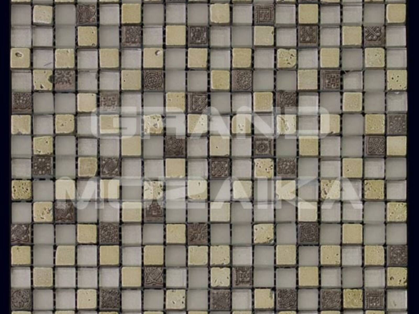 Элитная мозаика Luxury серии Inka состоит из кусочков размером 15х15 мм. Полотно выполнено из мозаик приглушенного серого цвета. Вкрапление мозаик с незамысловатым орнаментом делает полотно оригинальным. Интерьер дополненный такой мозаикой окунет вас в анналы древности.