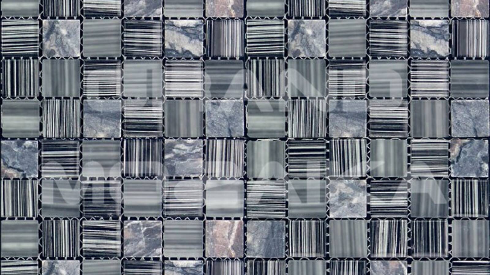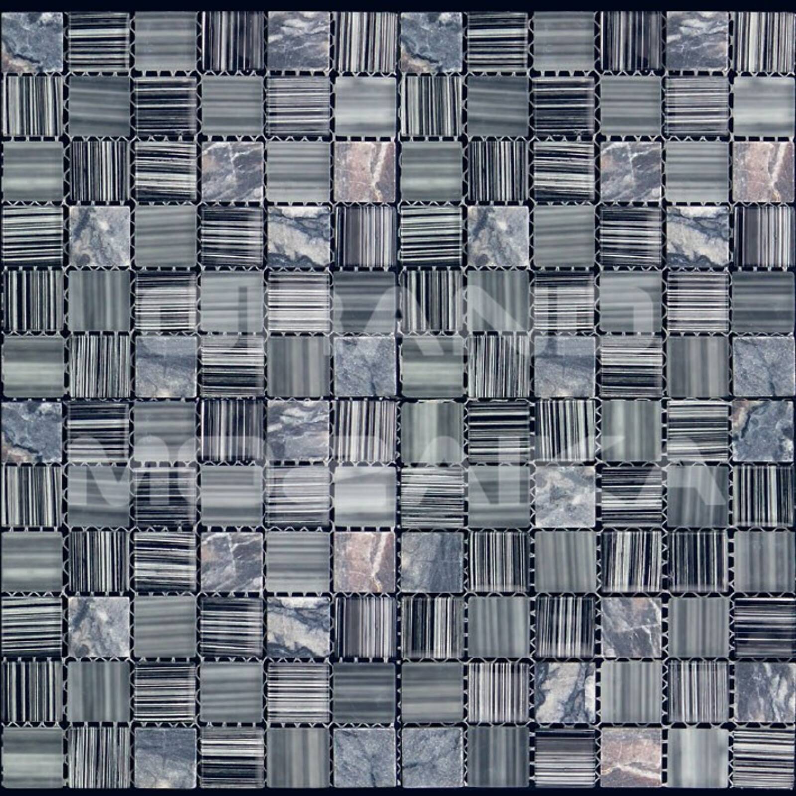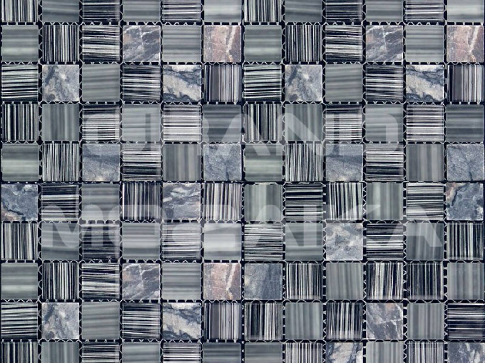 Микс мозаика серии Mix Glass&Stone состоит из кусочков размером 23х23 мм. Полотно размером 300х300 мм состоит из стеклянных и каменных мозаик различных оттенков серого цвета. Такая мозаика послужит оригинальным дополнение любого интерьера.