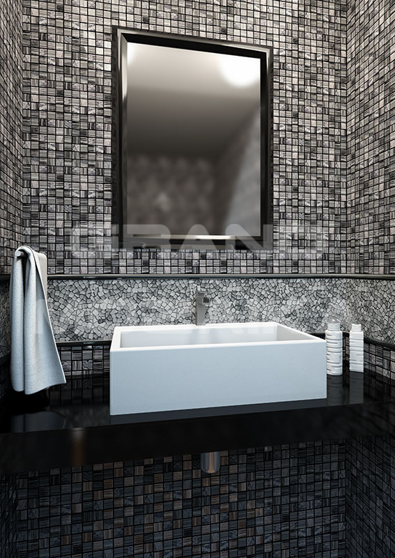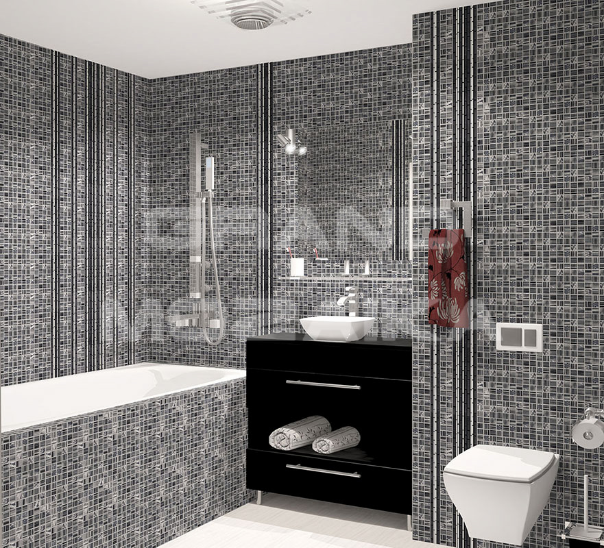 - Применение: для отделки внутри помещений, для пола (малая проходимость), для душевой кабины и ванной комнаты, для паровых комнат, для кухни