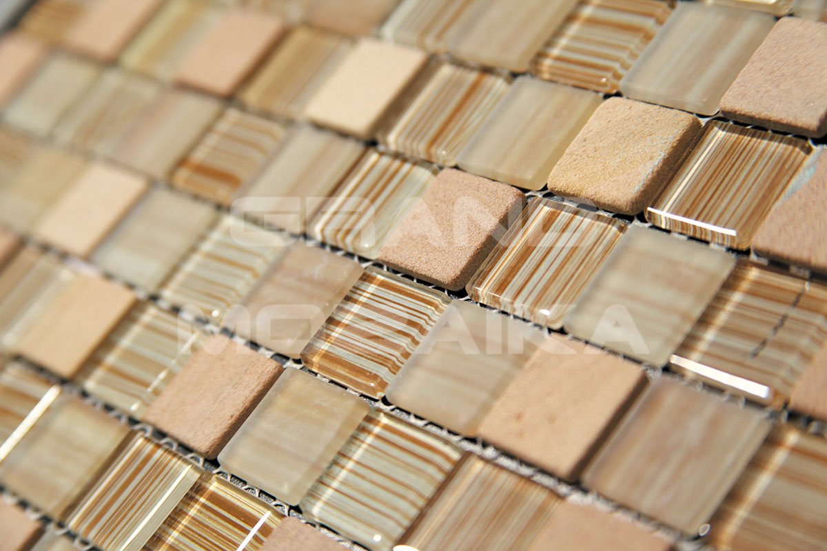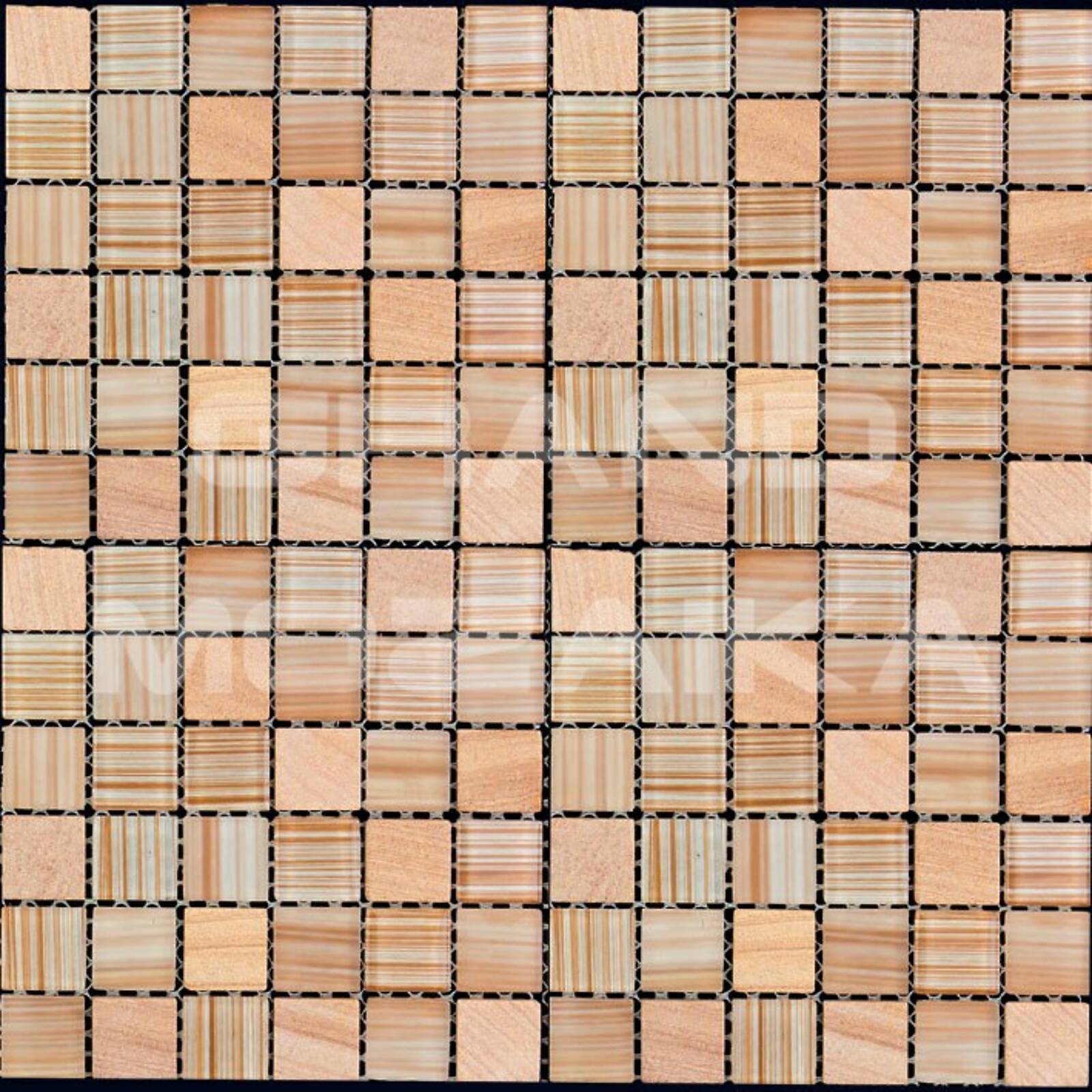 Микс мозаика серии Mix Glass&Stone состоит из кусочков размером 23х23 мм. Полотно размером 300х300 мм состоит из стеклянных и каменных мозаик различных оттенков розового и оранжевого цвета. Такая мозаика послужит оригинальным дополнение любого интерьера.