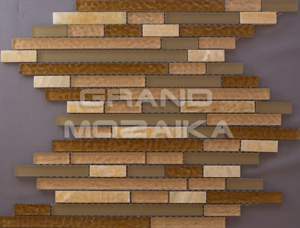 Мозаика микс серии Exclusive бежево-коричневого цвета. Сочетание гладких каменных плиток с гофрированными стеклянными сделает любой интерьер индивидуальным, завораживающим своей неповторимой красотой. Плитки прямоугольной формы размером 15х48, 15x98 и 15х198 мм. Толщина мозаики 8 мм - достаточна для укладки мозаичного панно на любую поверхность. Такая мозаика будет выигрышно смотреться в сочетании с деревом и другими натуральными материалами.