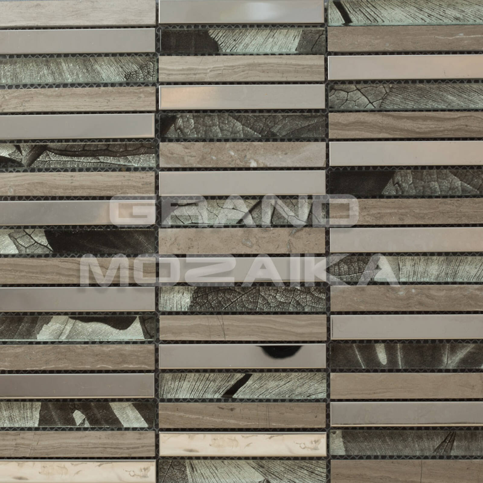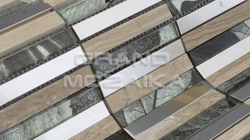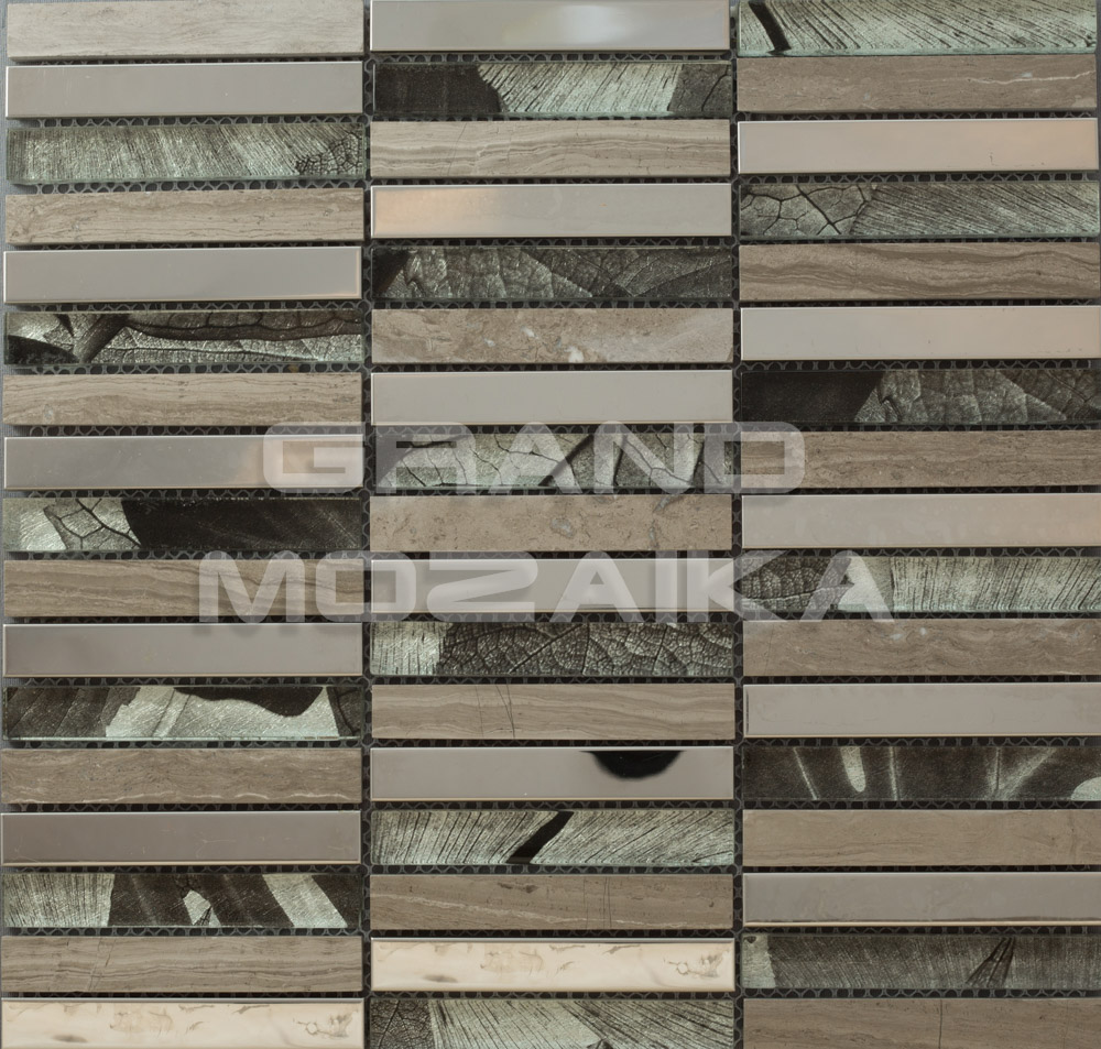 Мозаика микс серии Metal - это оригинальный облицовочный материал в виде стеклянных, каменных и металлических плиток прямоугольной формы. Толщина мозаики - 8 мм. Полотно из чипов закреплено на сетке размером 285х300 мм. Мозаика микс отлично подойдет для декора современных помещений и зданий.
