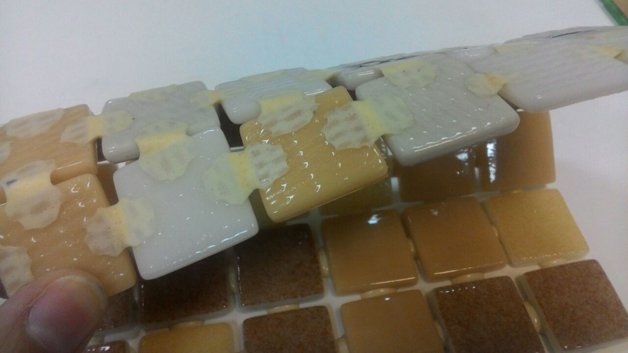 Монтировать следует только на бесщелочные, бескислотные клеи, так как в составе данной мозаики амальгама (фольга). Если использовать цементный клей, данная мозаика может почернеть.