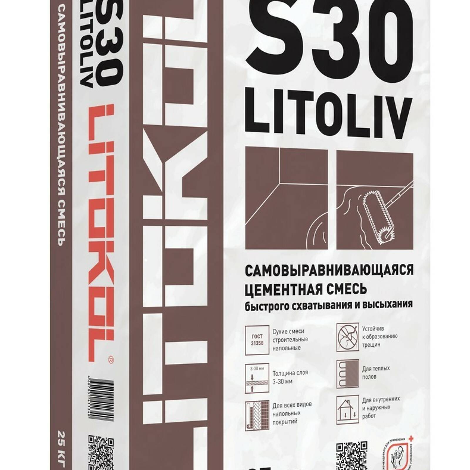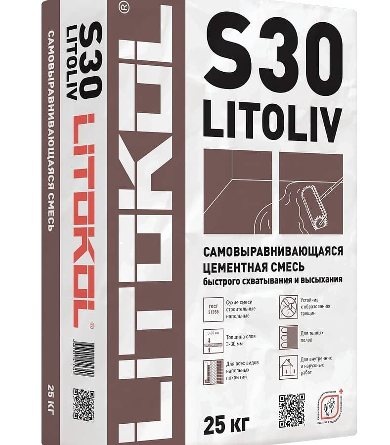LITOLIV S30 - самовыравнивающаяся сухая смесь на основе цемента, инертных наполнителей отборной фракции и органических добавок. Продукт отличают следующие свойства: