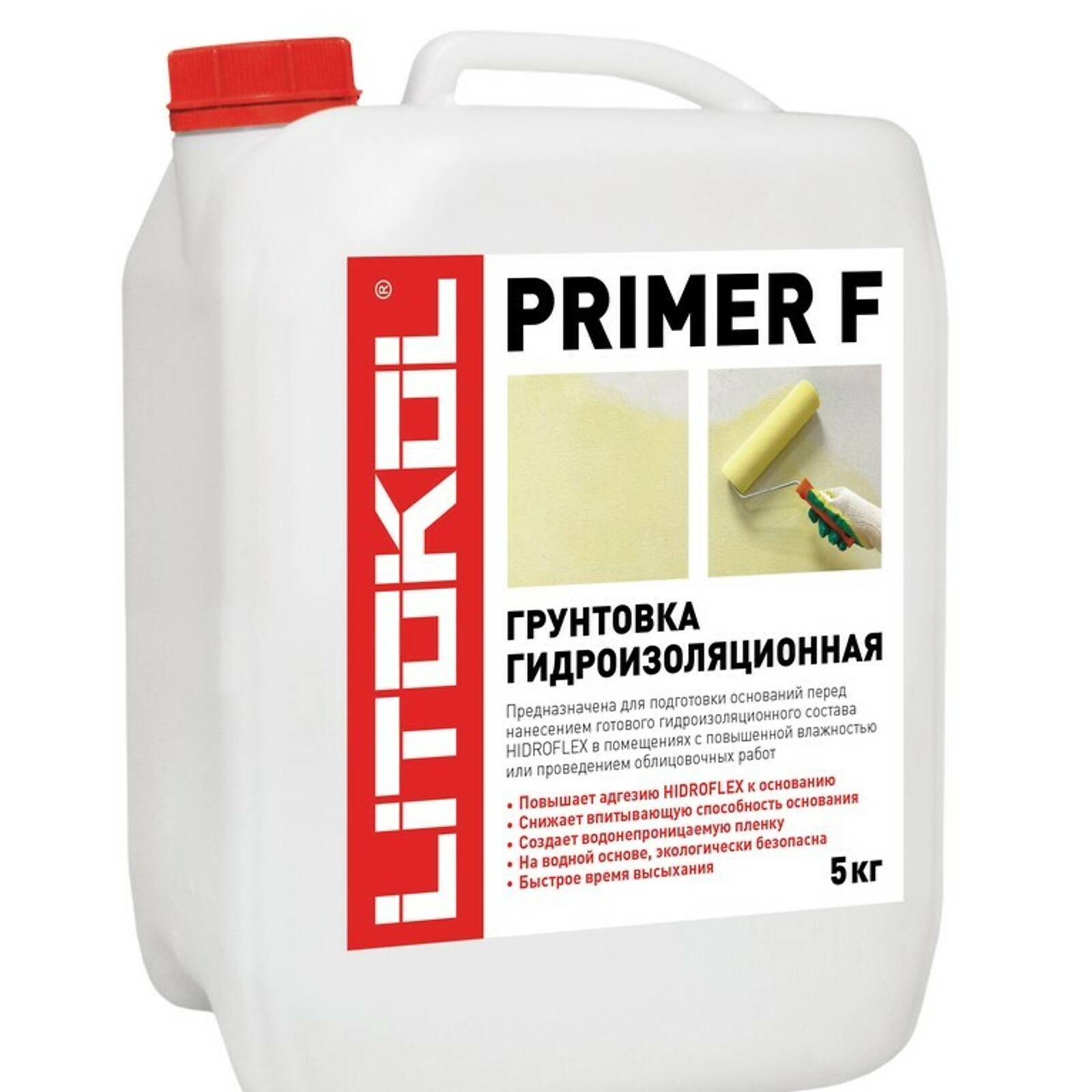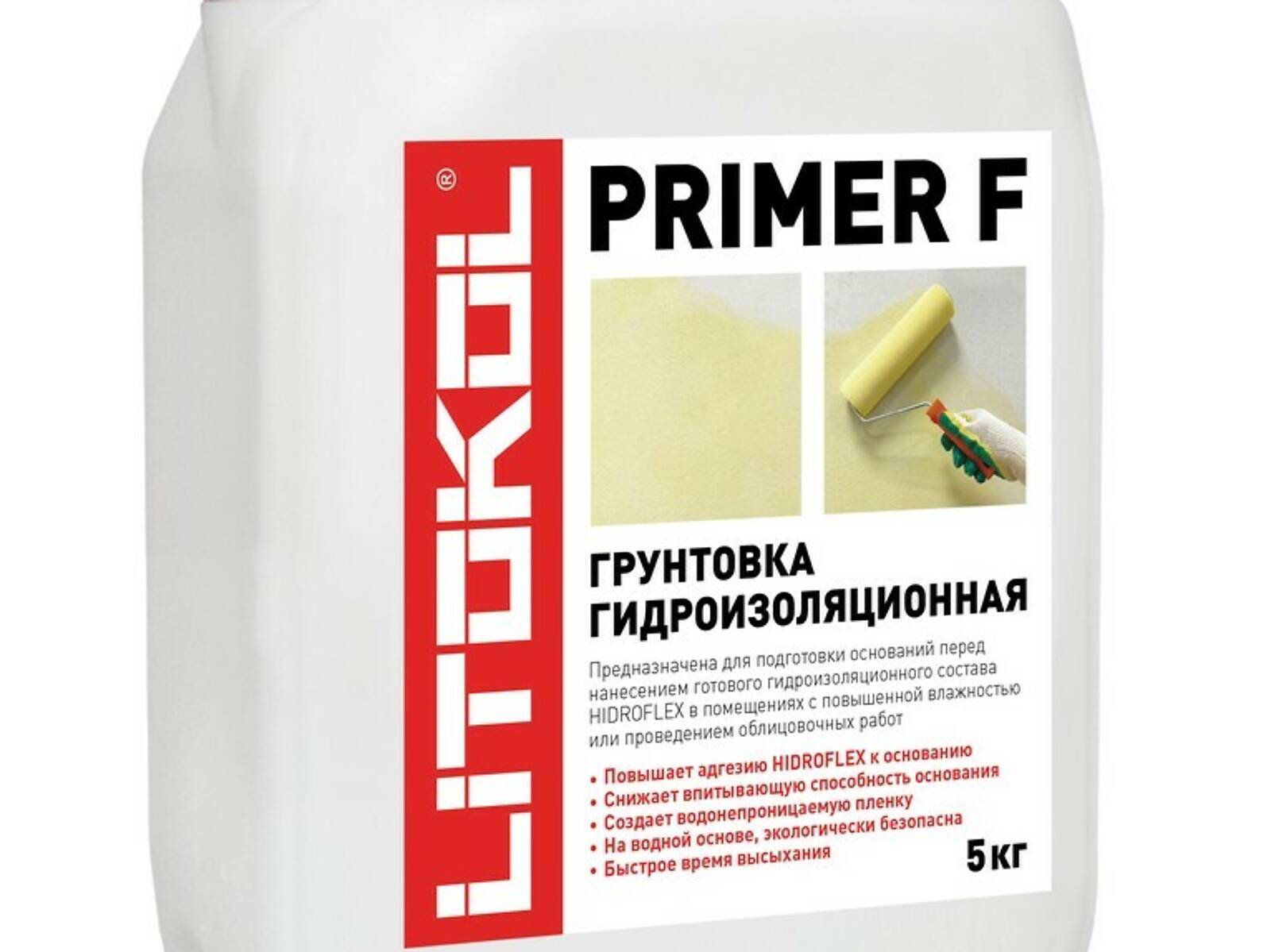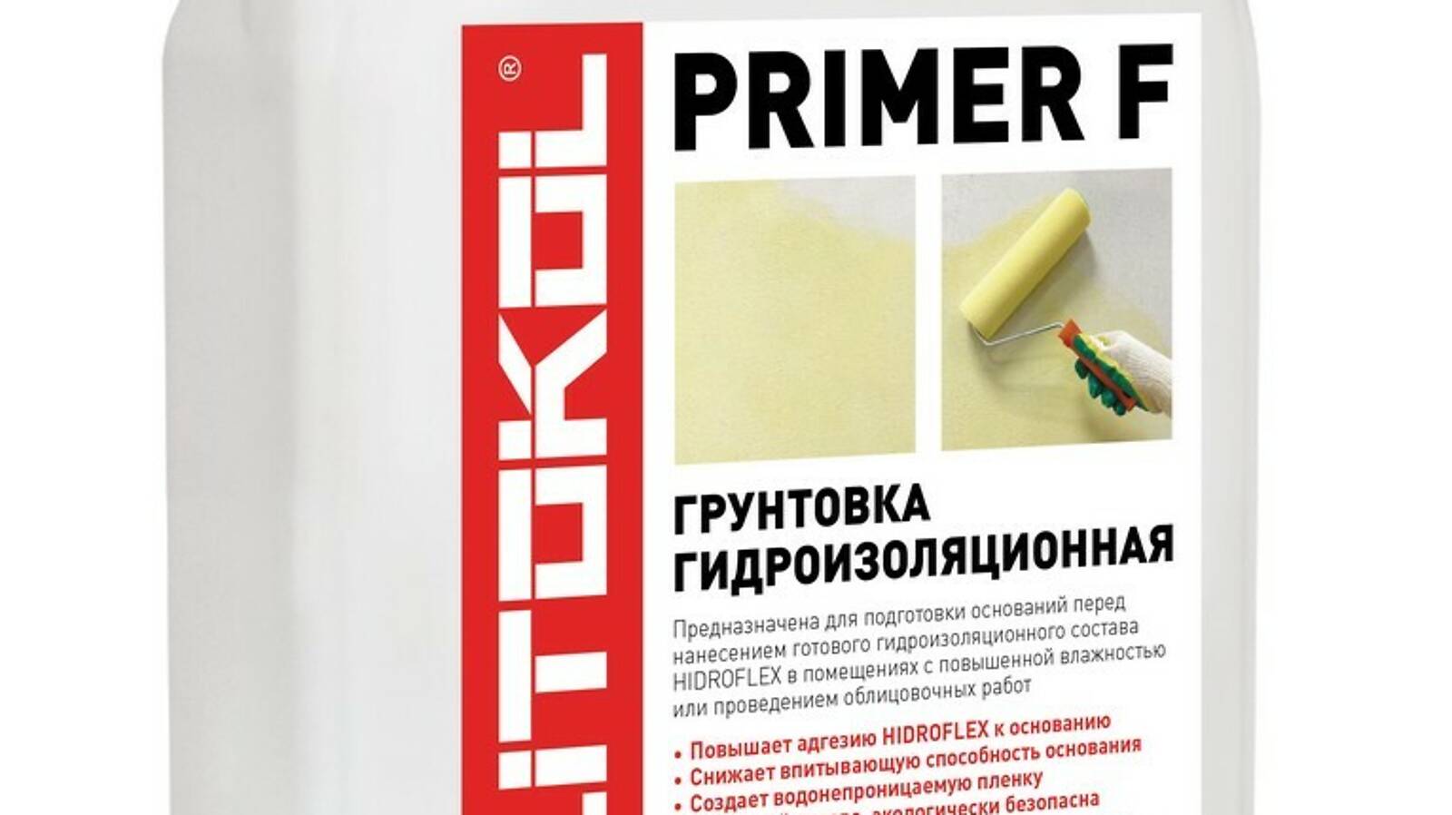 Грунтовка PRIMER F-м предназначена для подготовки оснований перед нанесением гидроизоляционной мастики HIDROFLEX во внутренних влажных помещениях, таких как: душевые кабины, ванные комнаты, кухни. Для внутренних работ.
