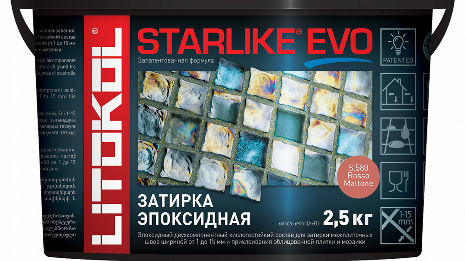 STARLIKE EVO единственная в мире запатентованная эпоксидная затирка. При нанесении STARLIKE EVO не дает эффекта прокрашивания на керамическои плитке, мозаике, плитке из натурального камня.
