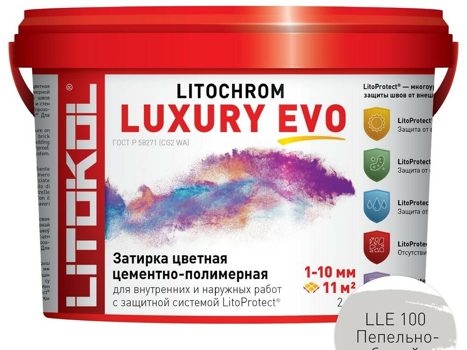 LITOCHROM LUXURY EVO - эластичная водоотталкивающая цементно-полимерная затирка с защитной системой LitoProtect для заполнения межплиточных швов шириной 1–10 мм.