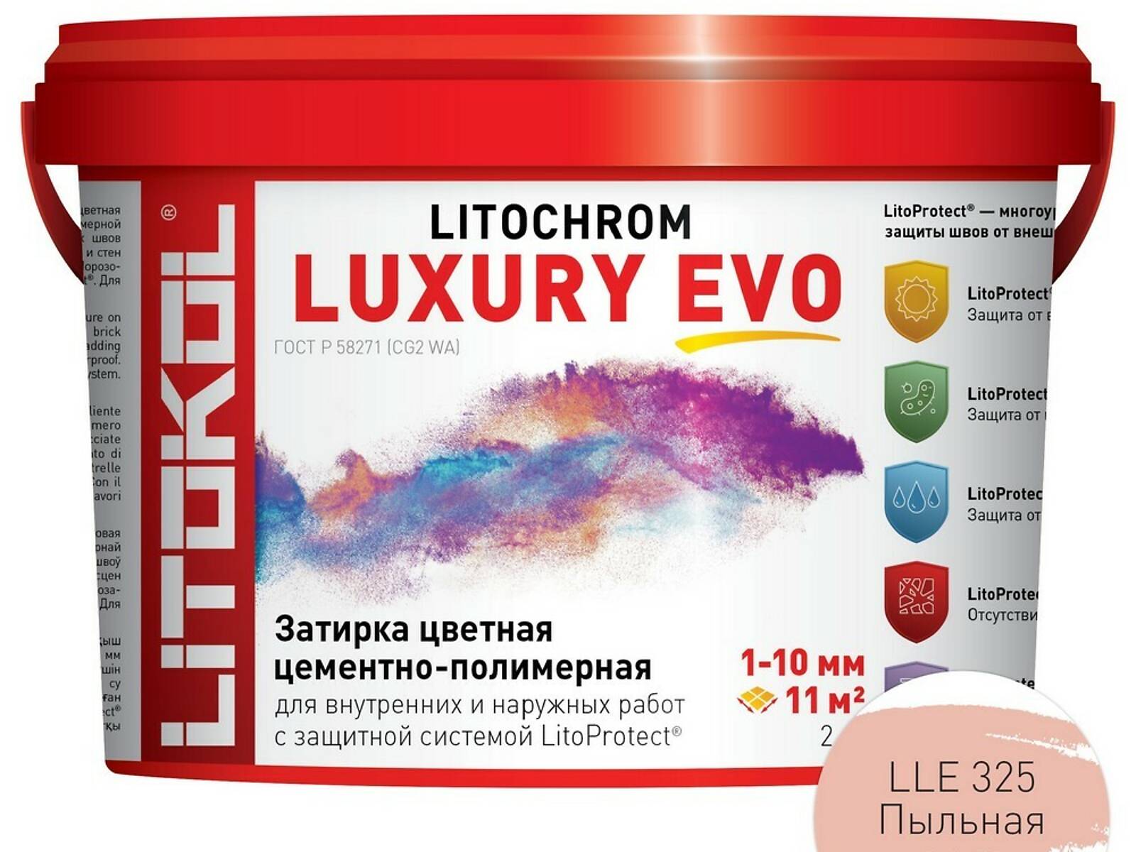 LitoProtect® UV — защита от выцветания. Благодаря специальной формуле все затирочные смеси LITOCHROM LUXURY EVO имеют защиту от выцветания и изменений цвета при воздействии ультрафиолетового излучения в процессе эксплуатации.