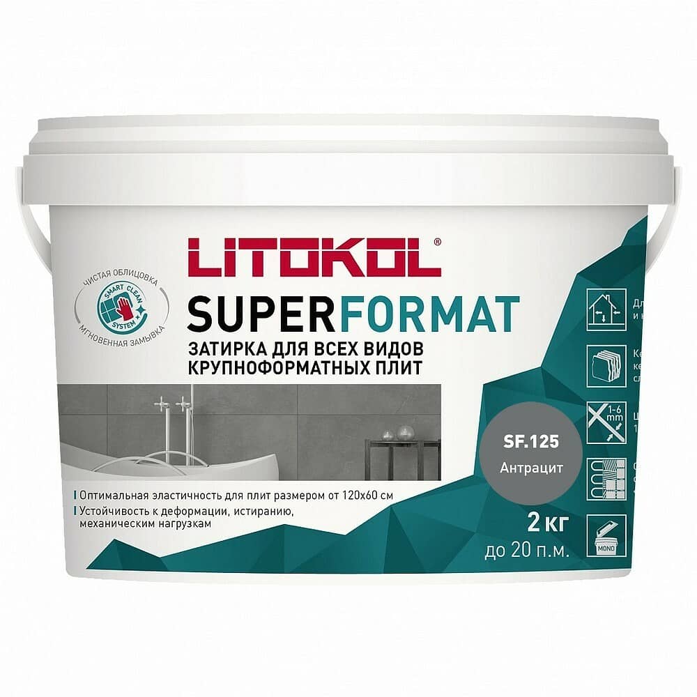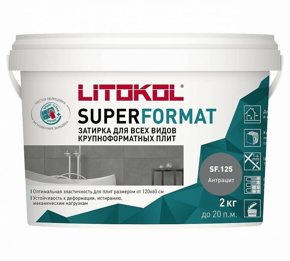 SUPERFORMAT - полиуретановая затирка для всех видов крупноформатных плит. Предназначена для заполнения межплиточных швов крупноформатных плит шириной 1- 6 мм. Продукт обладает следующими свойствами: