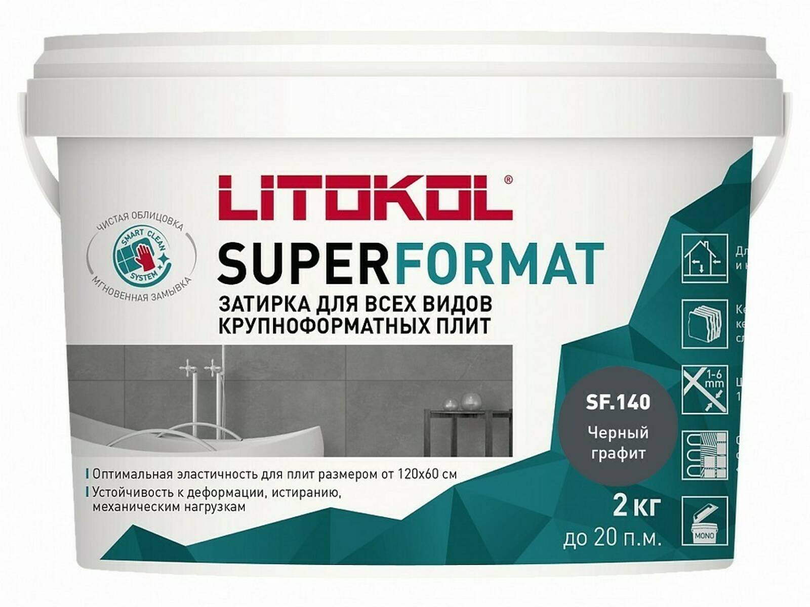 SUPERFORMAT - полиуретановая затирка для всех видов крупноформатных плит. Предназначена для заполнения межплиточных швов крупноформатных плит шириной 1- 6 мм. Продукт обладает следующими свойствами: