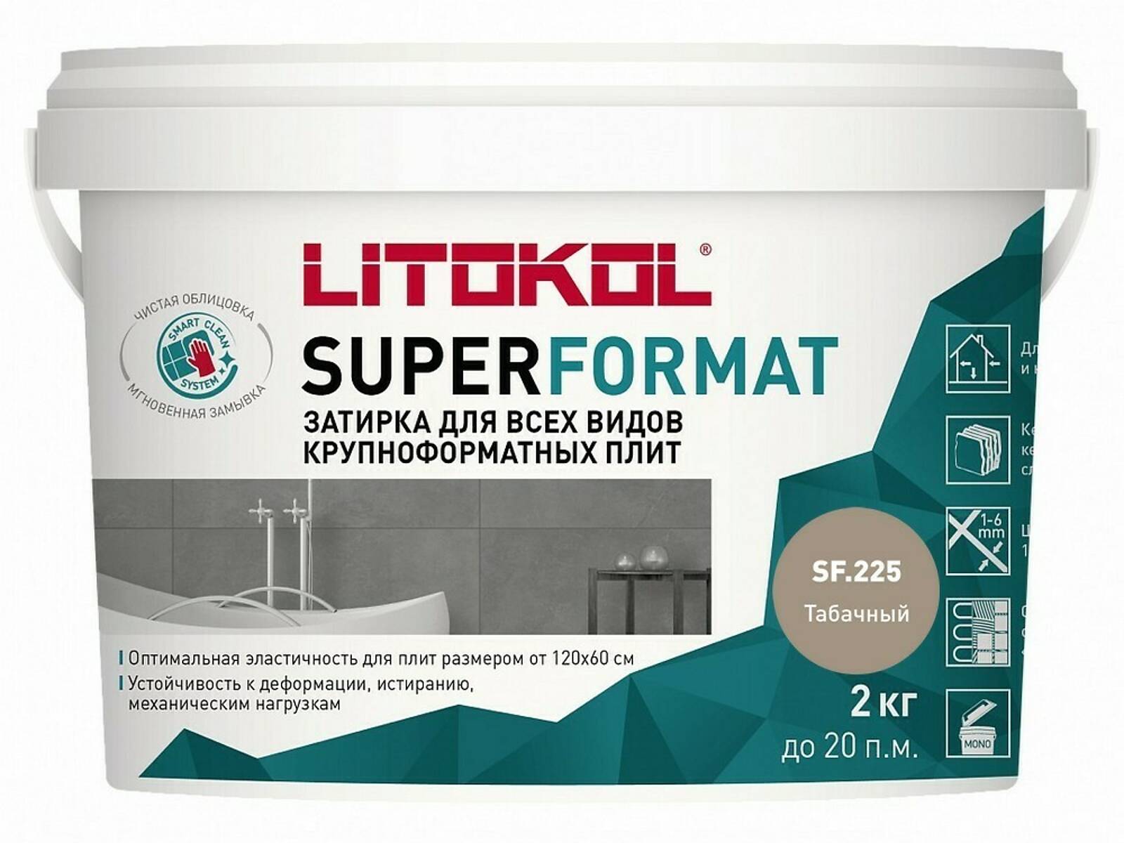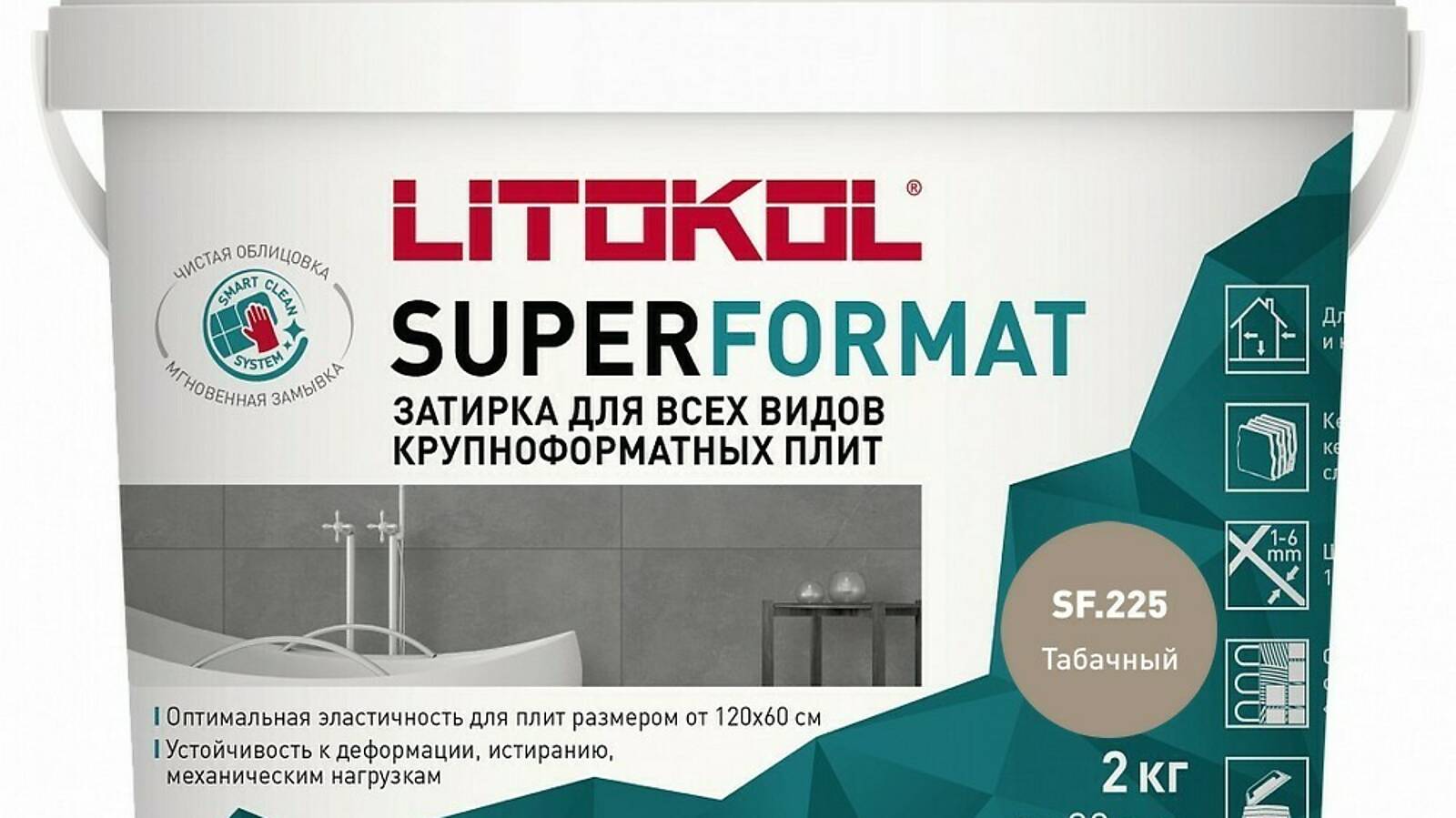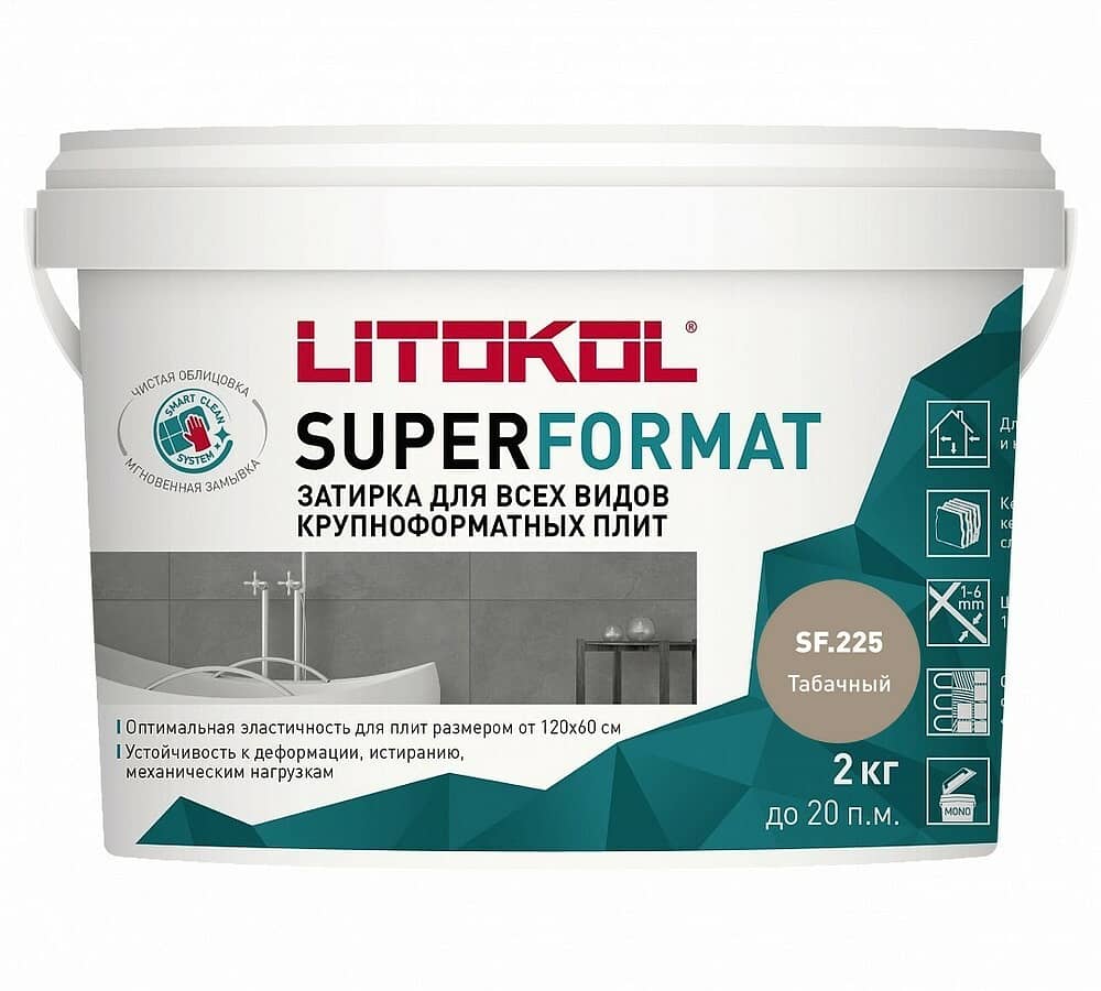 SUPERFORMAT - полиуретановая затирка для всех видов крупноформатных плит. Предназначена для заполнения межплиточных швов крупноформатных плит шириной 1- 6 мм. Продукт обладает следующими свойствами: